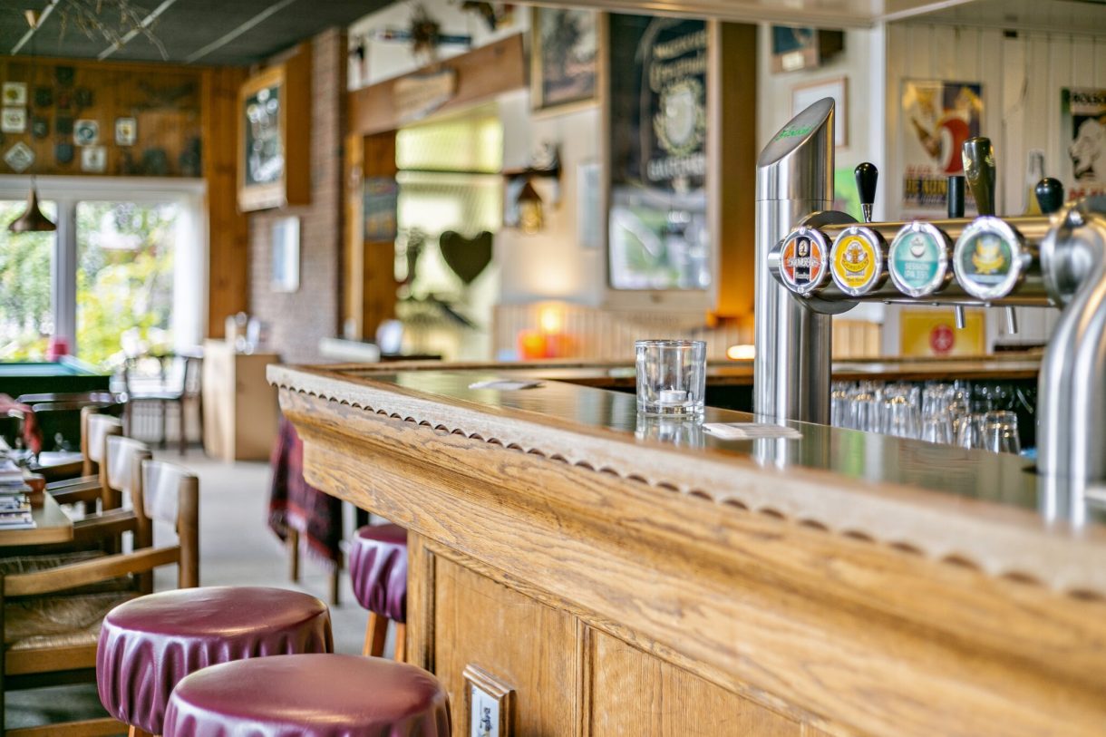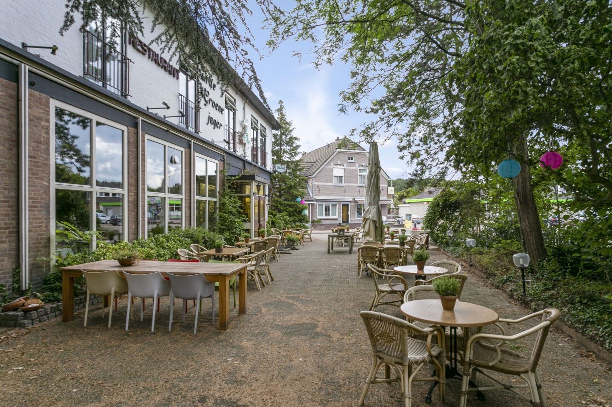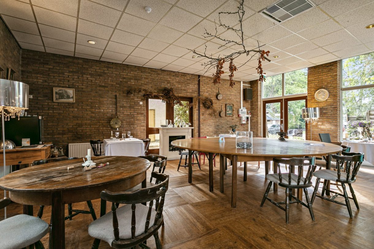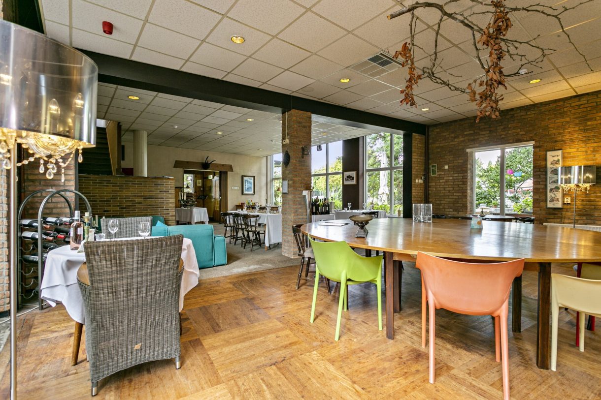 Via het terras aan de voorzijde kom je bij de entree van het café/restaurant. Aan de linkerkant is de grote eetzaal met een trap naar de bovenverdieping en de toegang tot de aangrenzende bedrijfskeuken. Aan de rechterzijde is het café met een karakteristieke bar en het biljart. Tussen het café en de eetzaal zijn het heren- en damestoilet met een portaal.