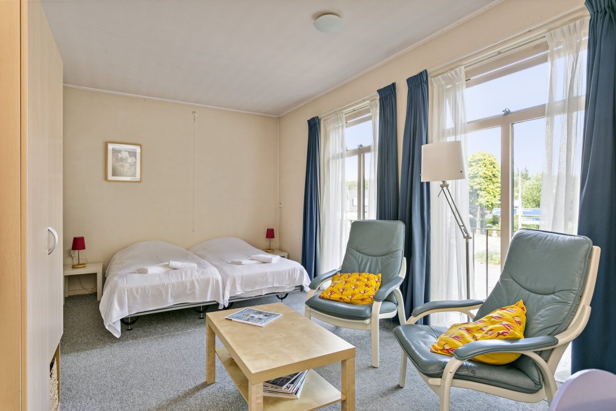 Vanaf de gang zijn de vluchttrap aan de achterzijde en de berging/linnenkamer te bereiken. Conform de afgegeven gebruiksvergunning zijn er voldoende vluchtwegen, blusmiddelen, noodverlichting, en deuren met panieksluiting aanwezig.