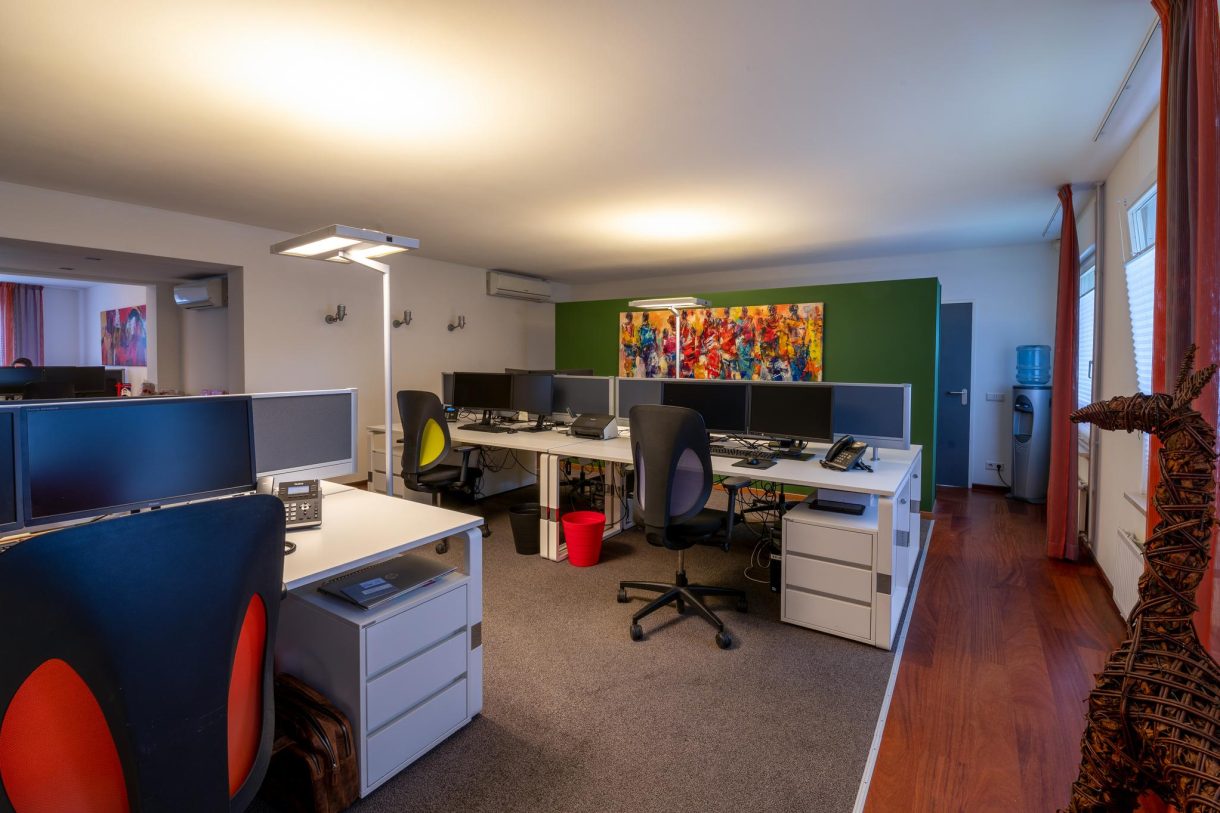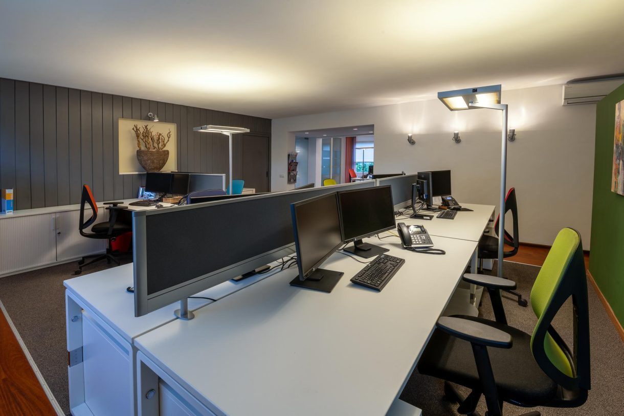 Kantoorruimte met een eigen entree, pantry en een dubbele toiletgroep. Ruimte kantoortuin met daarin mogelijkheid tot zes werkplekken en twee spreekkamers. Tevens is er voor de kantoorruimte aparte parkeergelegenheid aan de voorzijde van het object.