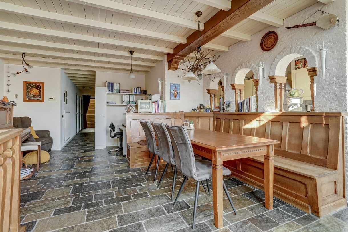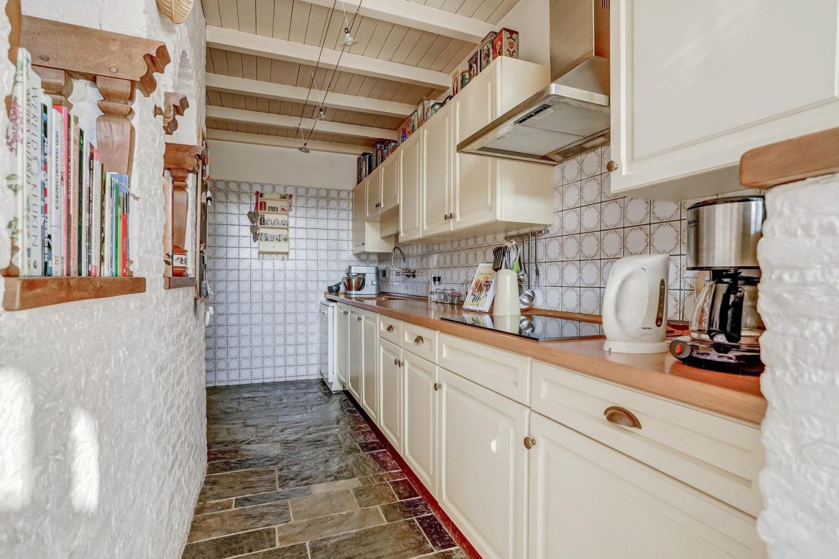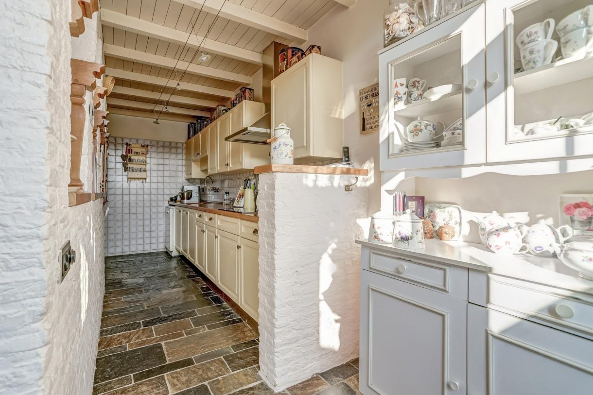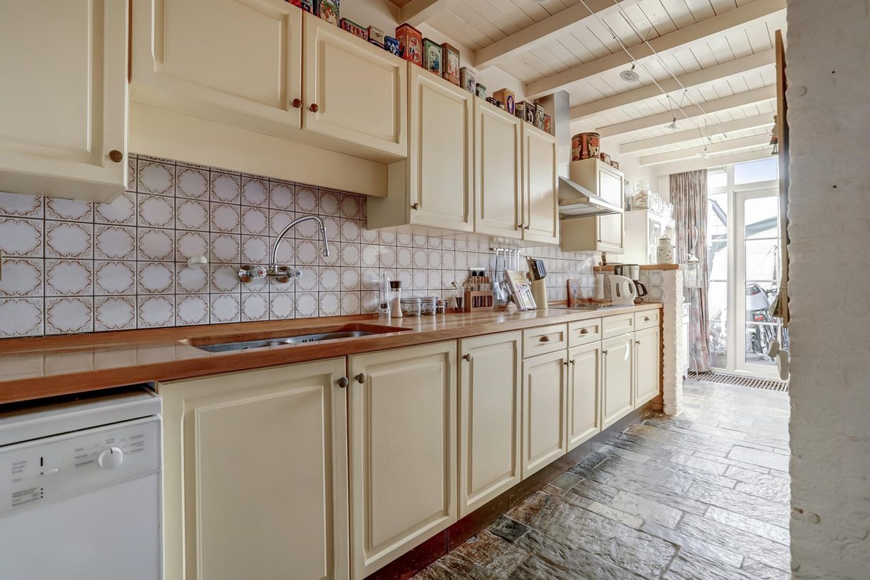 Via de winkel stapt u zo de hal binnen van het woonhuis, die toegang geeft tot een toiletruimte, aparte ruimte met de cv-ketel (Nefit, 2003) en een gasboiler en een bijkeuken met de aansluitingen voor de wasapparatuur. Vanuit de hal komt u in het leefgedeelte met open keuken en leistenen vloer. De keuken beschikt over een inductiekookplaat, koelkast, combimagnetron en volop kastruimte om alles netjes opgeruimd te houden. Tevens bereikt u vanuit hier een royale kelder, perfect voor extra opslag of misschien wel een wijnvoorraad. Openslaande tuindeuren brengen u naar de zonnige achtertuin. De tuin heeft een ultieme ligging op het zuiden, waardoor je hier de hele dag door kunt genieten van de zon. Tevens is de tuin aangelegd met veel groen, sierbestrating en voorzien van een handige achterom.