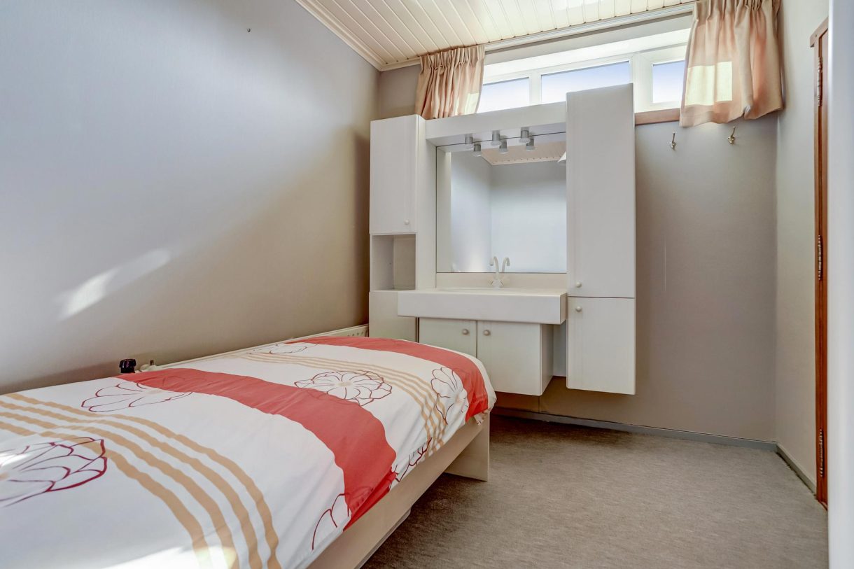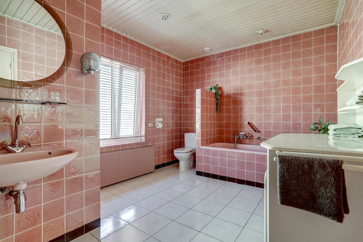 De overloop geeft toegang tot de woonkamer, welke aan de achterzijde van de woning is gesitueerd. Via hier krijgt u toegang tot een slaap-/werkkamer van circa 3,34 x 2,37 m. Aan de voorzijde van de woning bevindt zich een hal met twee vaste kasten en toegang tot de overige slaapkamers en de badkamer. Stap binnen in deze unieke badkamer en laat je verrassen door een vleugje nostalgie. Met zijn zachtroze tegels en vintage uitstraling is dit een echte eye-catcher voor liefhebbers van karakter en charme. De badkamer is voorzien van een douche, ligbad, toilet en een wastafel. Met een royale afmeting van ca. 3,92 x 3,02 meter biedt deze badkamer natuurlijk ook volop mogelijkheden voor een luxe upgrade.