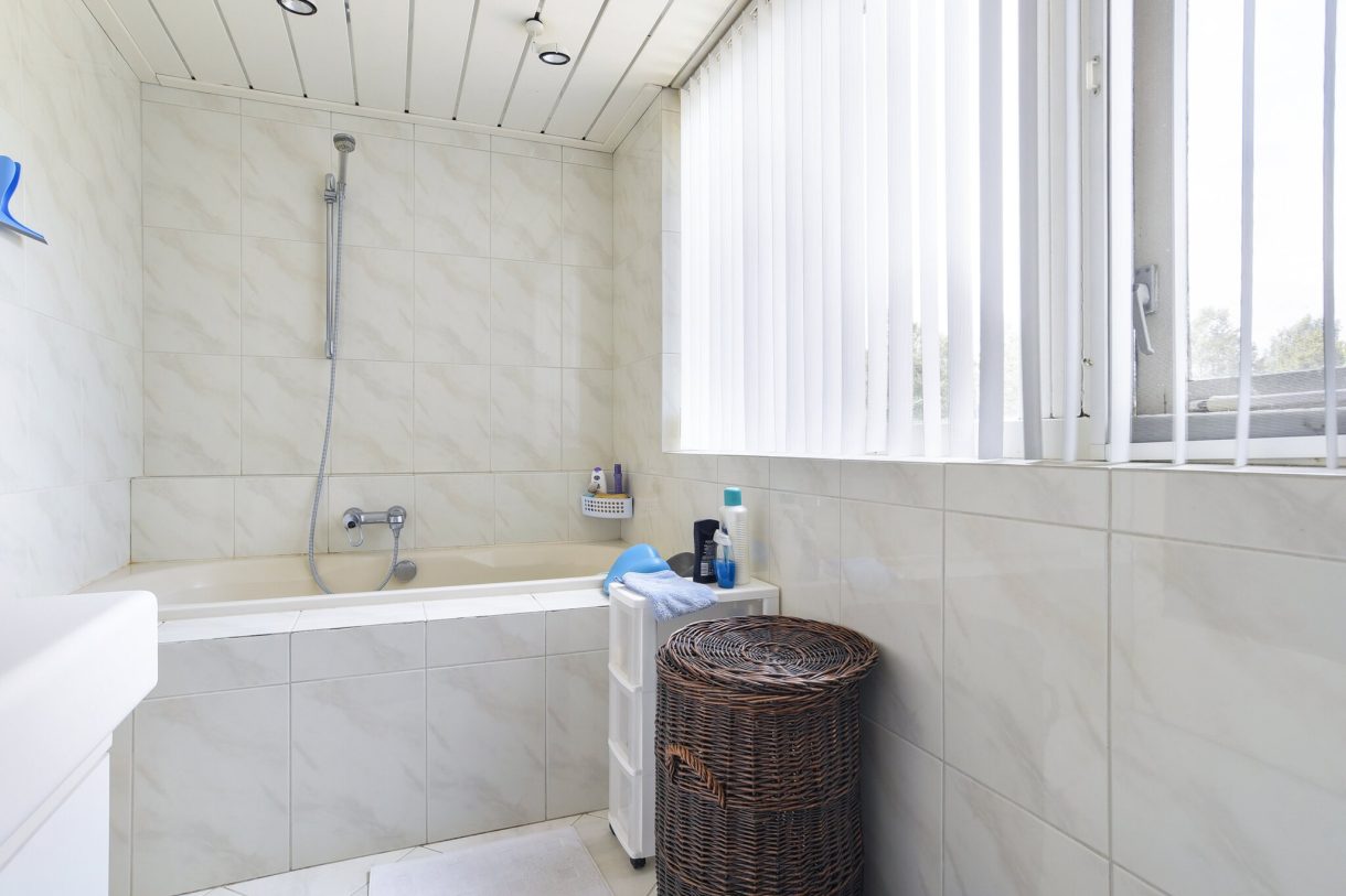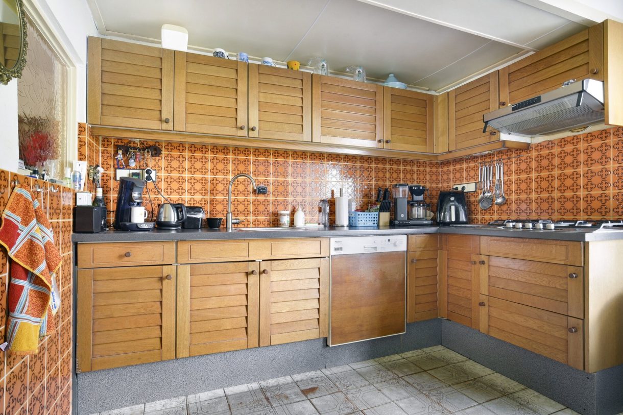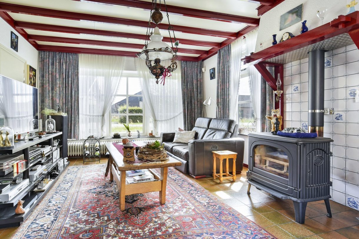 Hal met vide, meterkast, slaapkamer met laminaatvloer, woonkamer met tegelvloer, houtkachel en vaste kasten, dichte keuken met eenvoudige houten inrichting, portaal met toiletruimte, bijkeuken met witgoedaansluitingen, slaapkamer, woonkamer met open keuken met rechte opstelling voorzien van oven, koelkast en elektrische kookplaat, inpandige badkamer met inloopdouche, wastafel en verhoogd toilet. 1e verdieping: overloop, 2 grote slaapkamers, licht betegelde badkamer voorzien van ligbad, wandcloset en wastafelmeubel.
