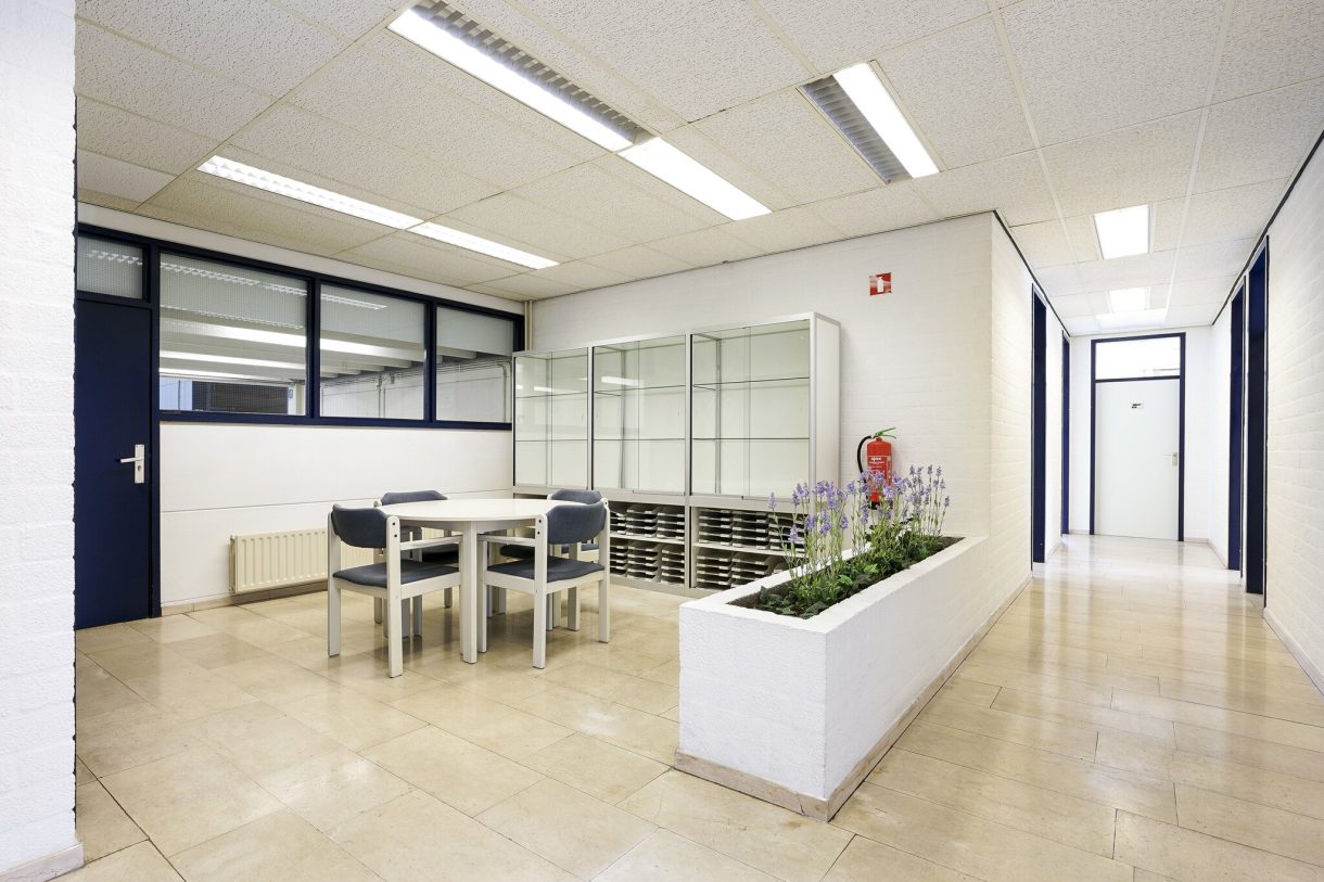 – kantoorruimte voorzien van systeemplafond met inbouw verlichtingsarmaturen.