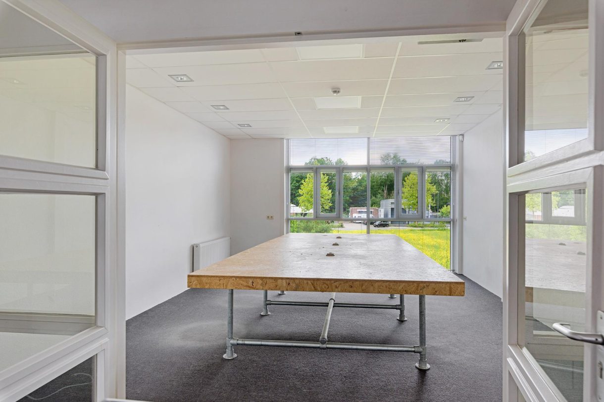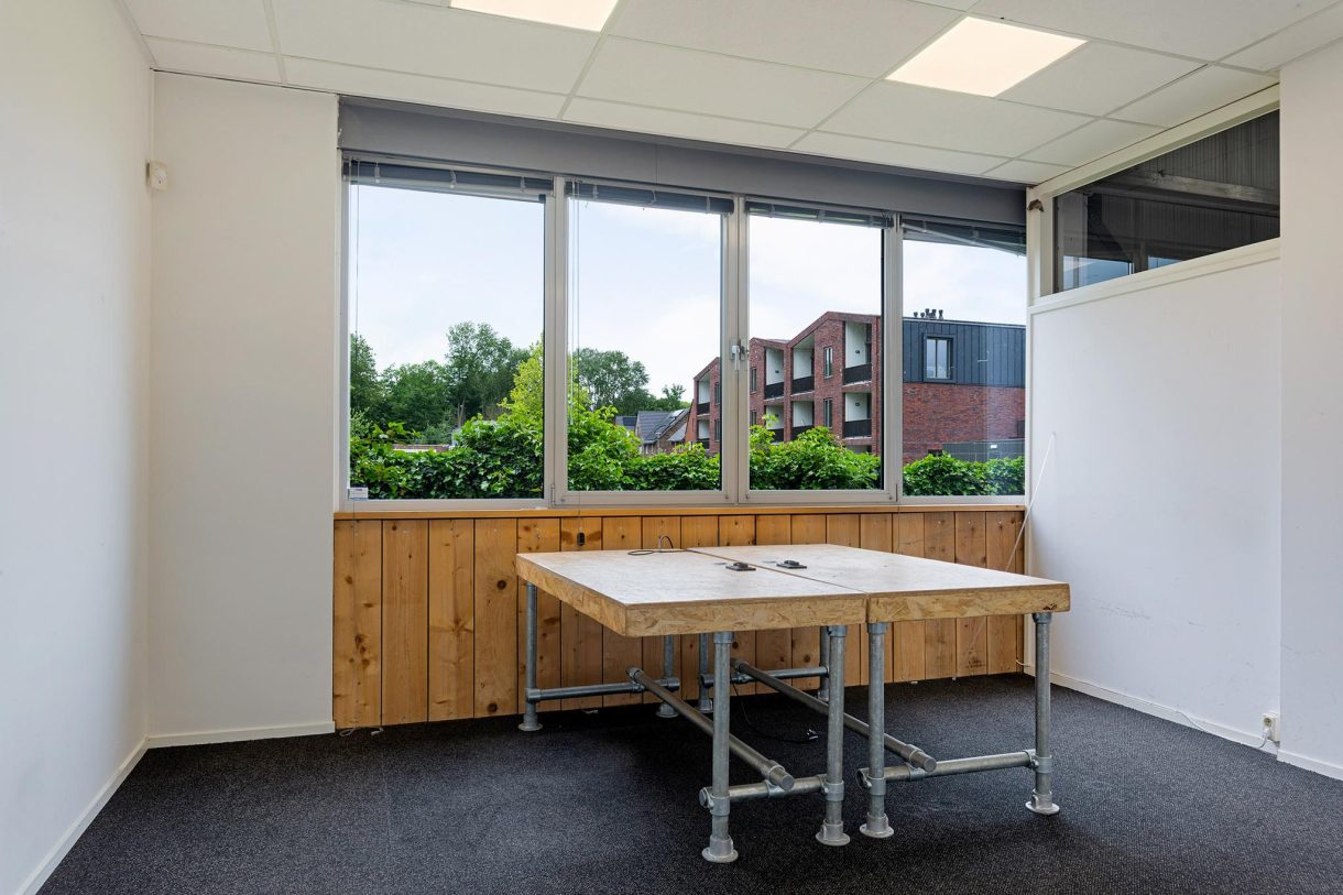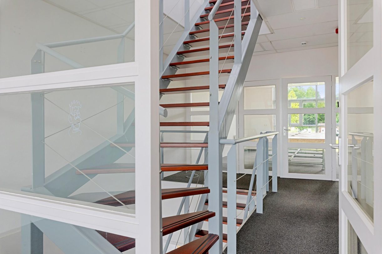 De kantoorvleugel in drie lagen omvat goede werkplekken met veel daglicht, vergaderruimten, receptie, toilet en pantry.