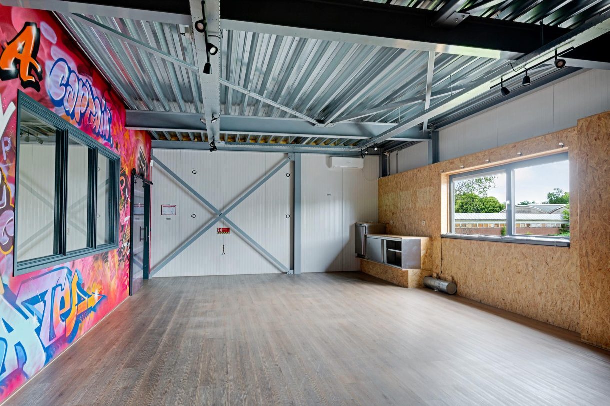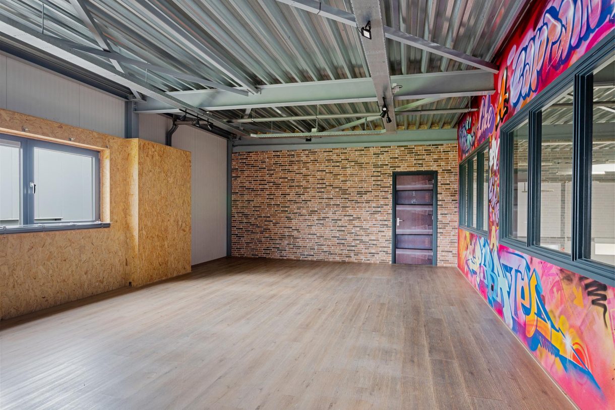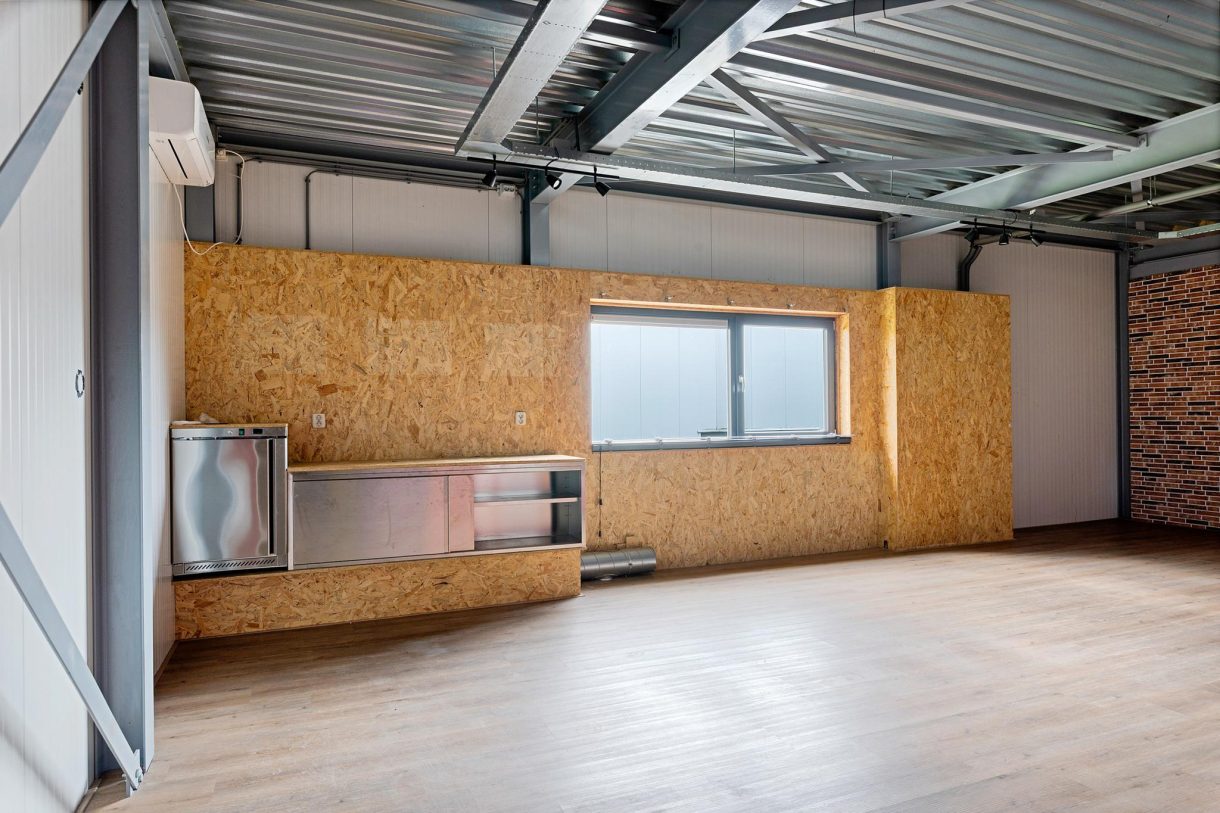 Het complex bestaat uit een functionele bedrijfshal van 430 m2 met een vrije hoogte van 600 cm en een insteekverdieping van ca. 100 m2.