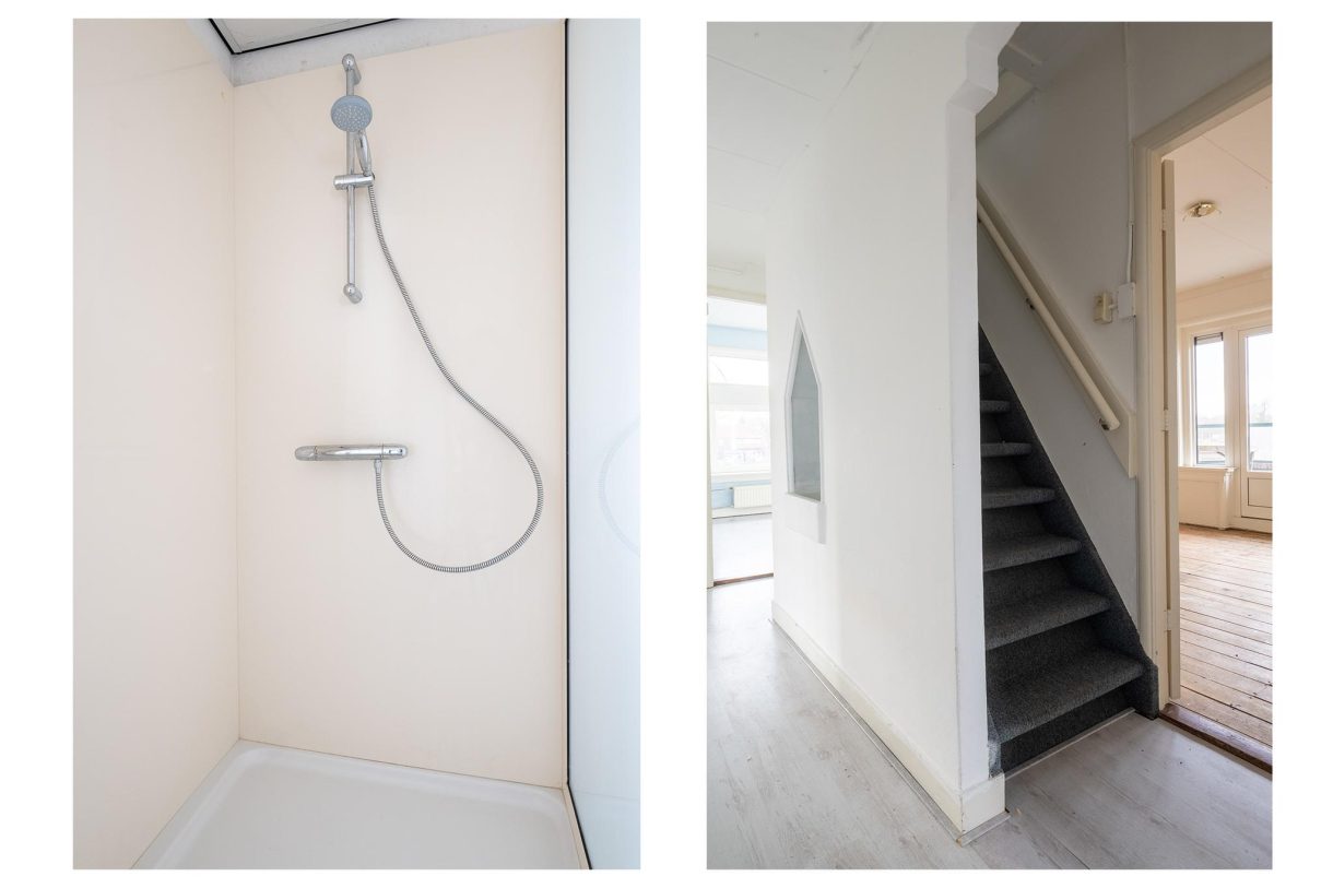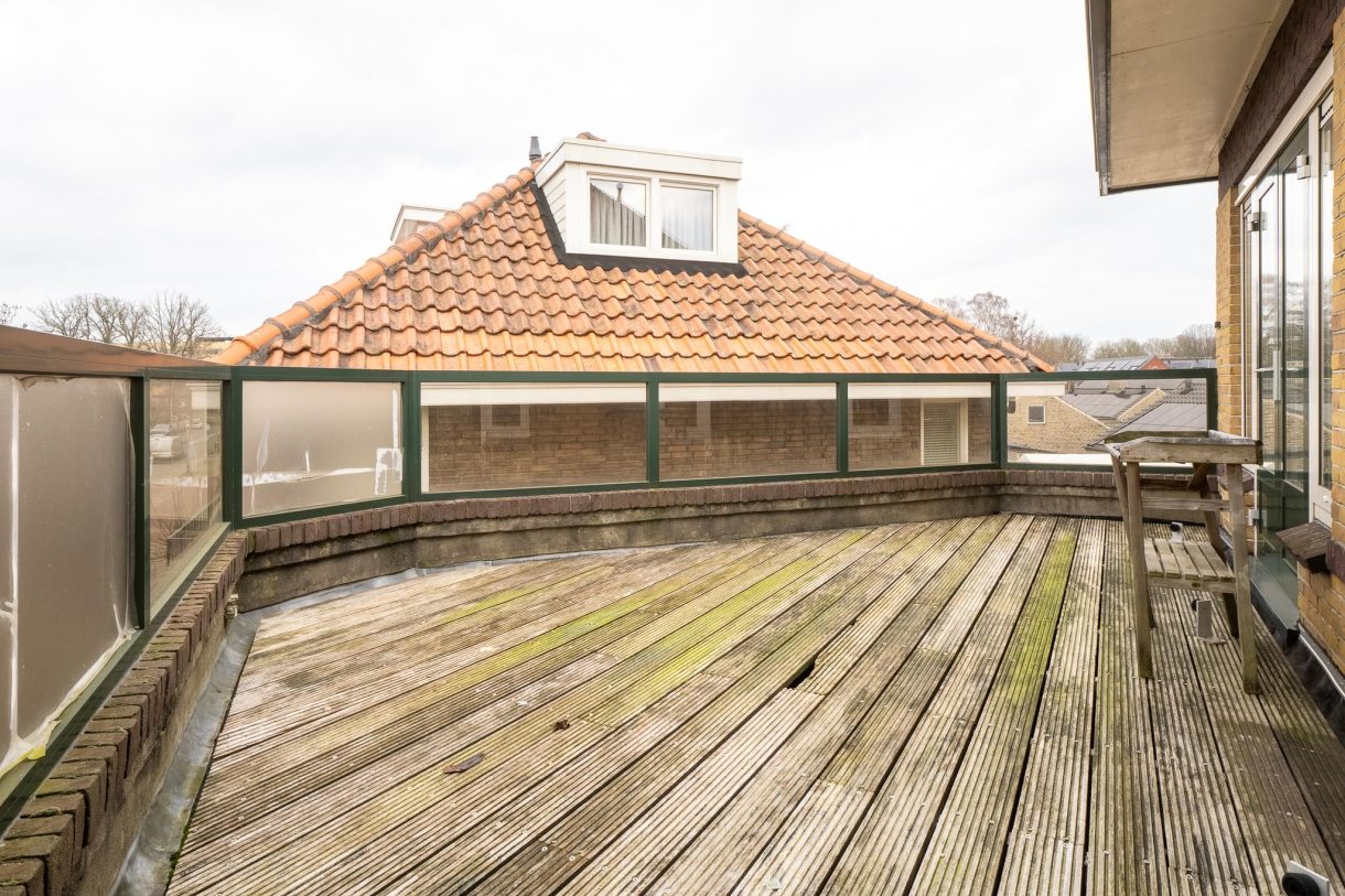 De bovengelegen woning bevindt zich op de eerste en tweede verdieping. Het woongedeelte bestaat uit een woonkamer, vijf slaapkamers, badkamer met separaat een toiletruimte een 3 tal dakterrassen. Daarnaast volop vaste kastruimte en opbergruimte onder de schuine zijden van de kap.