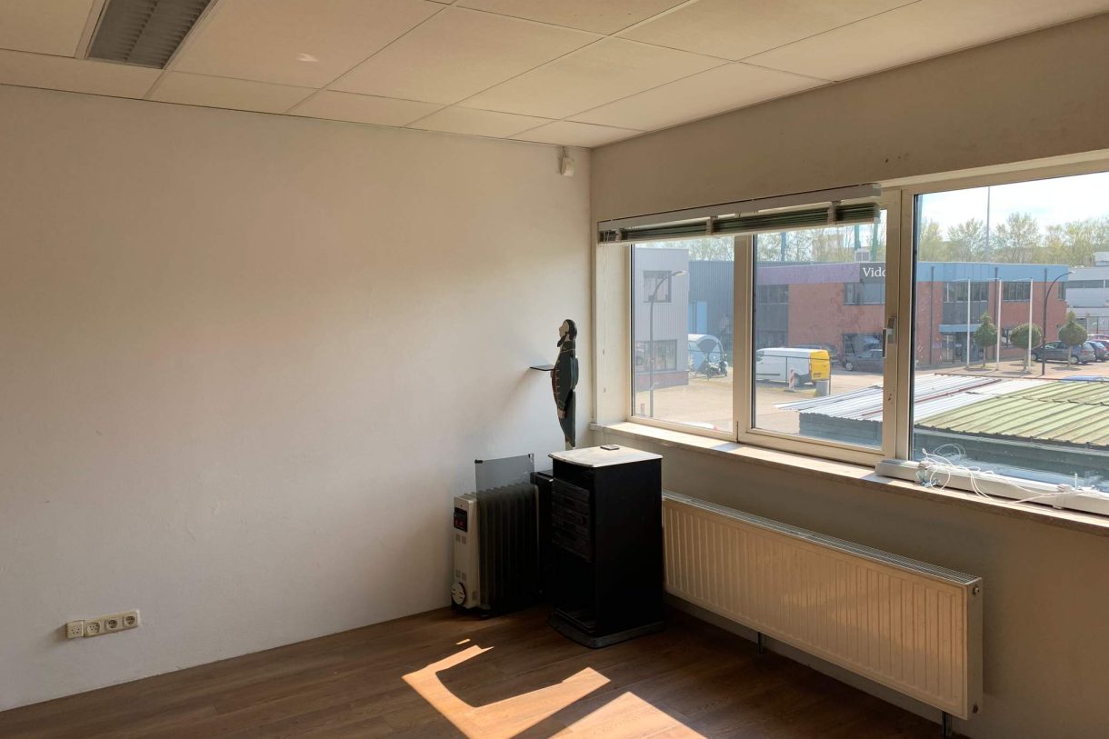 De kantoor en showroomruimte is voorzien van een systeemplafond met verlichtingsarmaturen