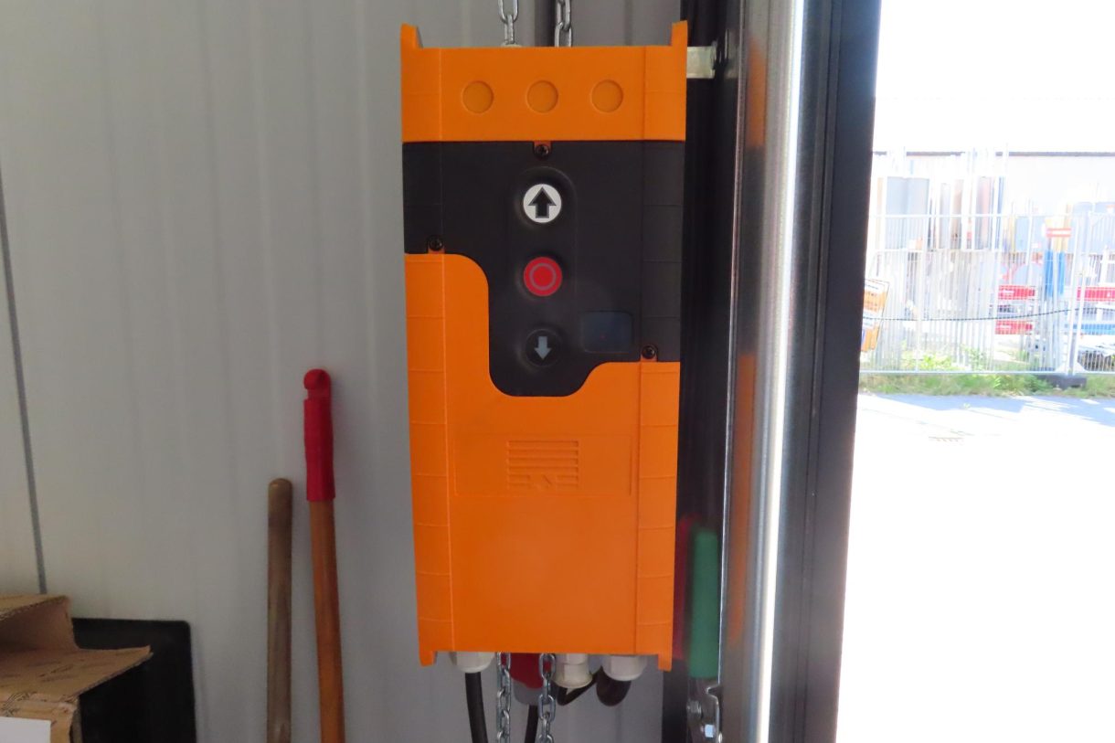 – Een elektrisch bedienbare overheaddeur 3.50m x 3.50m;