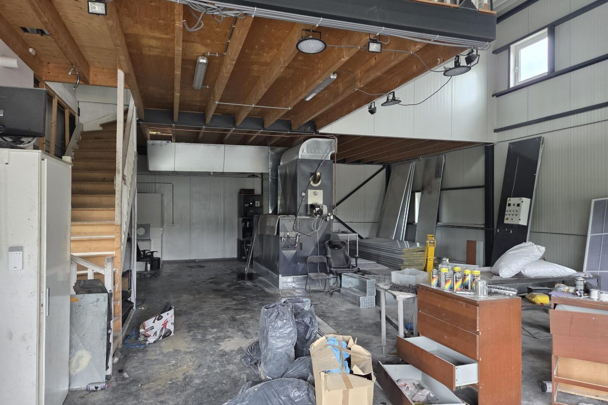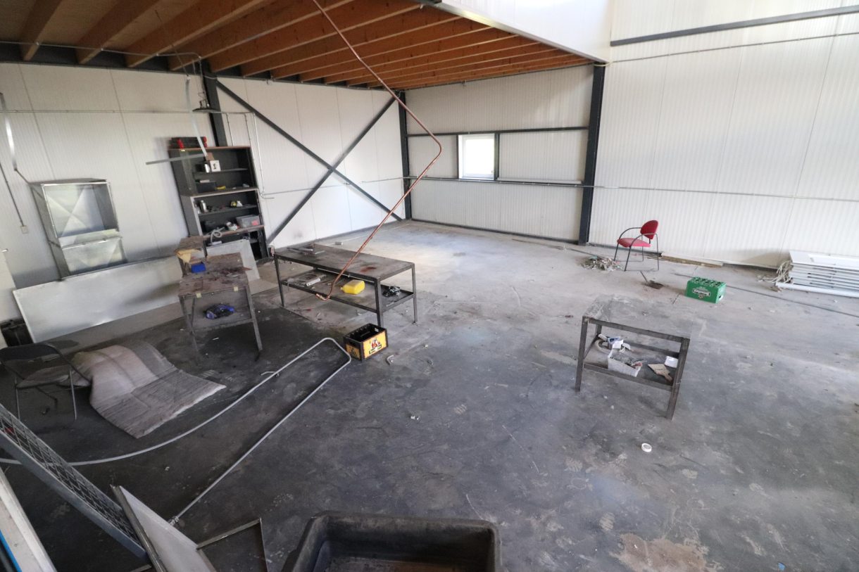 De hal is geschikt voor het uitvoeren van alle voorkomende onderhouds- en opslag- en reparatiewerkzaamheden. Er zijn twee grote overheaddeuren en een loopdeur aanwezig.