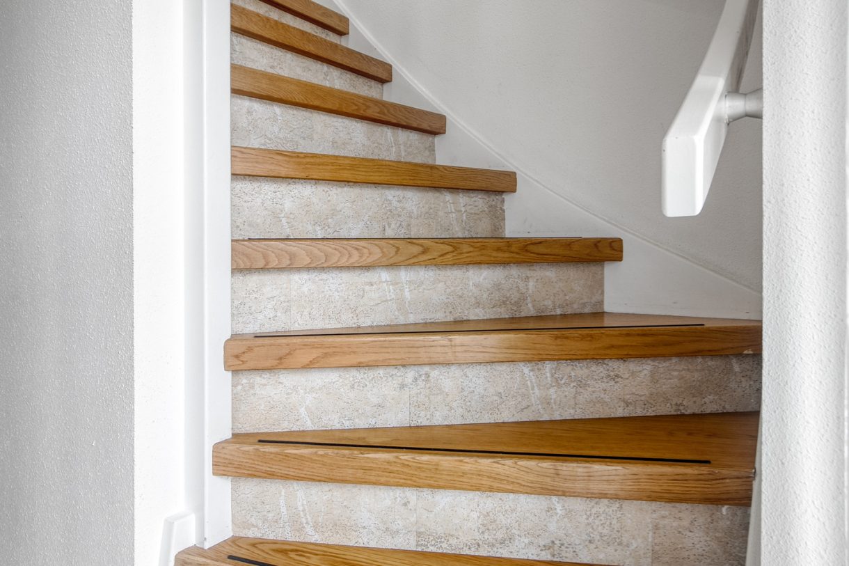 Op de eerste verdieping zijn er 3 grote slaapkamers (waarvan 2 met airco) met inbouwkasten en een luxe badkamer met elektrische vloerverwarming, wastafelmeubel, toilet en douchecabine. Via de vlizotrap is nog een ruime zolder bereikbaar met veel bergruimte.