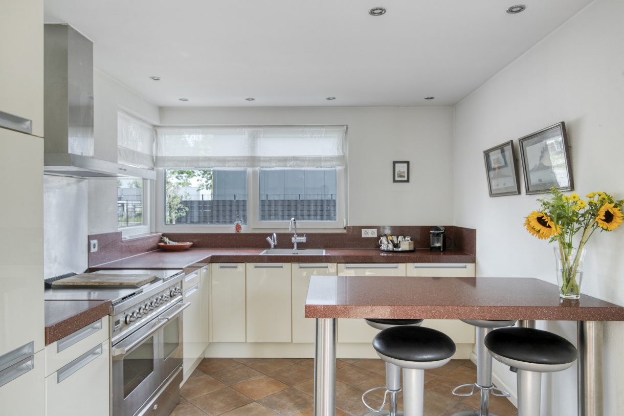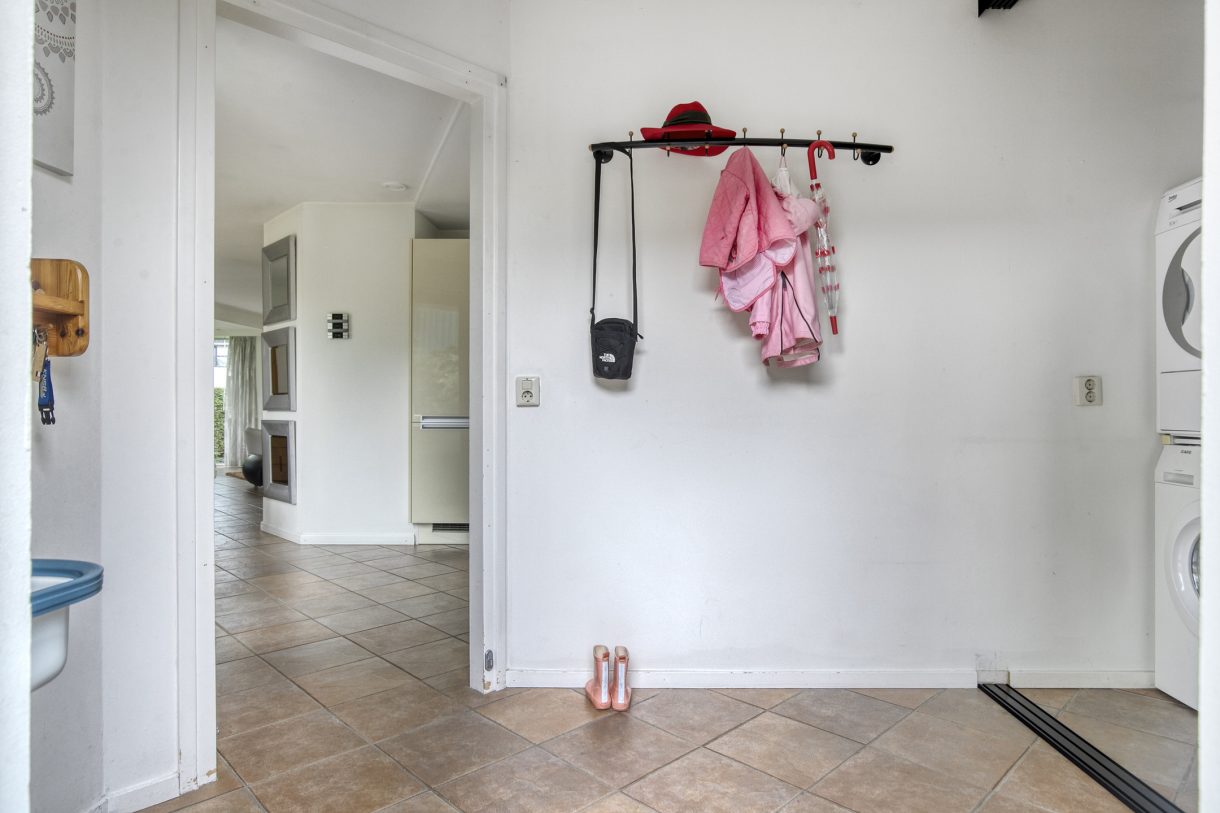 Er is een bijkeuken aanwezig met spoelbak en schuifwand met daar achter een mobiele bergkast en plaats voor de wasmachine en droger. Hier is ook de opstelling voor de cv ketel en hybride warmtepomp.