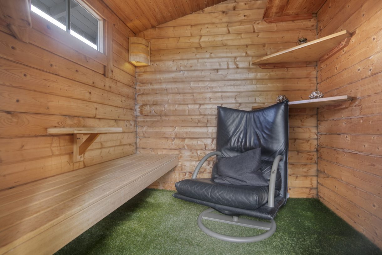 De zonnige achtertuin op het zuidwesten is een waar paradijs, compleet met een tuinhuis voorzien van sauna en dompelbad en diverse terrassen waar u heerlijk kunt ontspannen.
