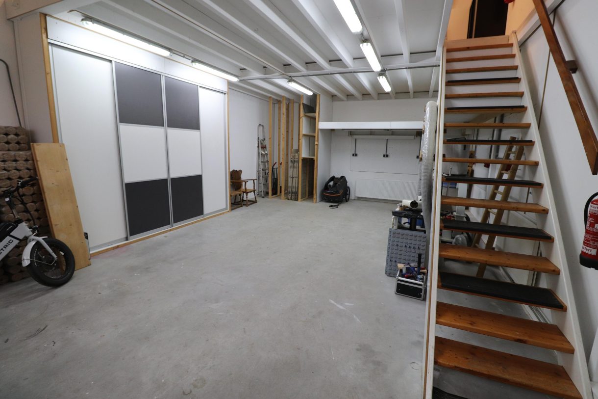 • De hal is volledig geïsoleerd en voorzien van een monoliet afgewerkte betonvloer, geschikt voor intensief gebruik.