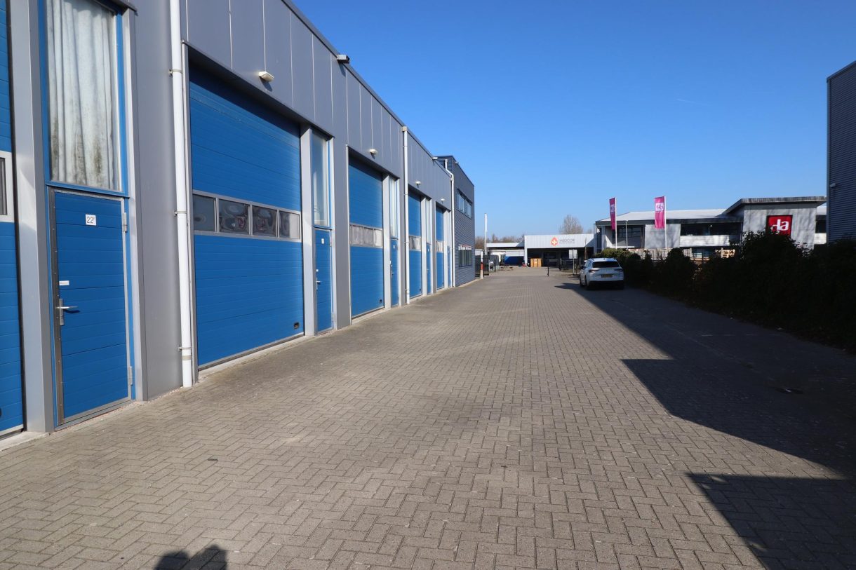 De bedrijfsunit is voorzien van een handmatig bedienbare overheaddeur, een loopdeur, meterkast met o.a. krachtstroom aansluiting, mogelijkheid voor toilet en een houten verdiepingsvloer die bereikbaar is met een vaste trap. Ook is er een goederenlift aanwezig.