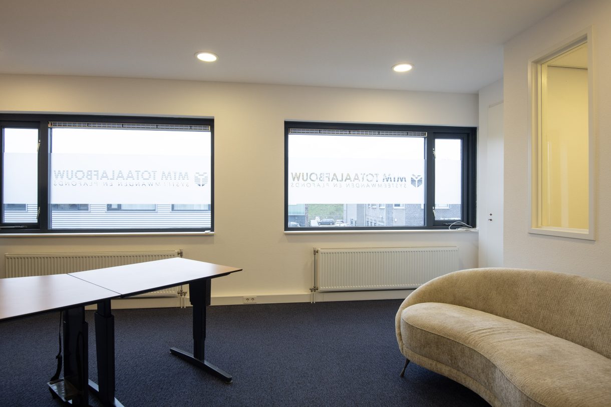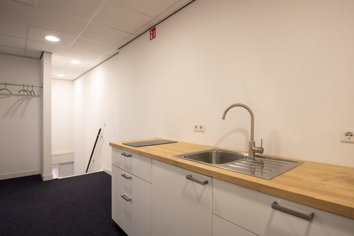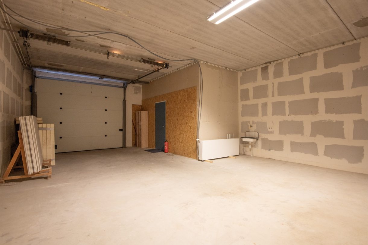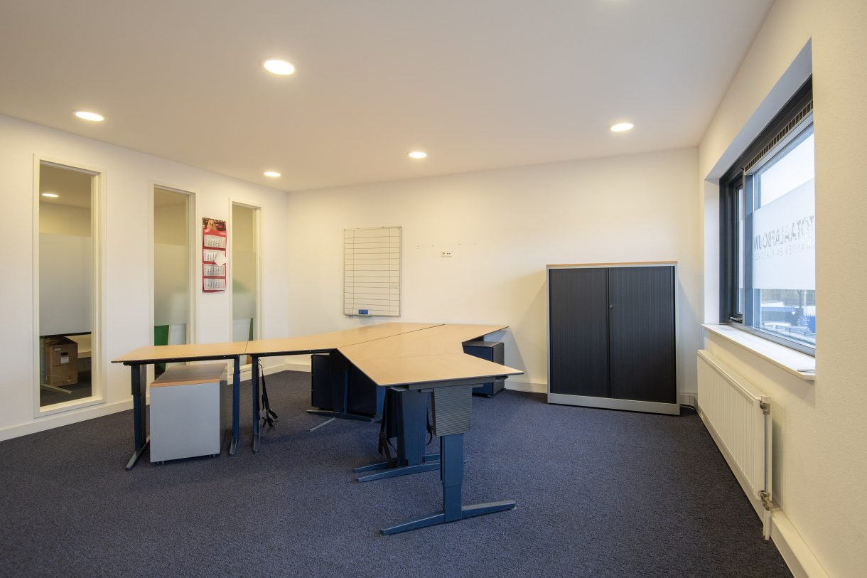 De kantoorruimte is op de 1e verdieping gelegen en bestaat uit een overloop met pantry en 2 kantoorruimten. De oppervlakte bedraagt plm. 62 m2. De begane grond beschikt over een bedrijfsruimte ter grootte van 64 m2 en is voorzien van een toilet en een ruime overhead-deur aan de voorzijde.