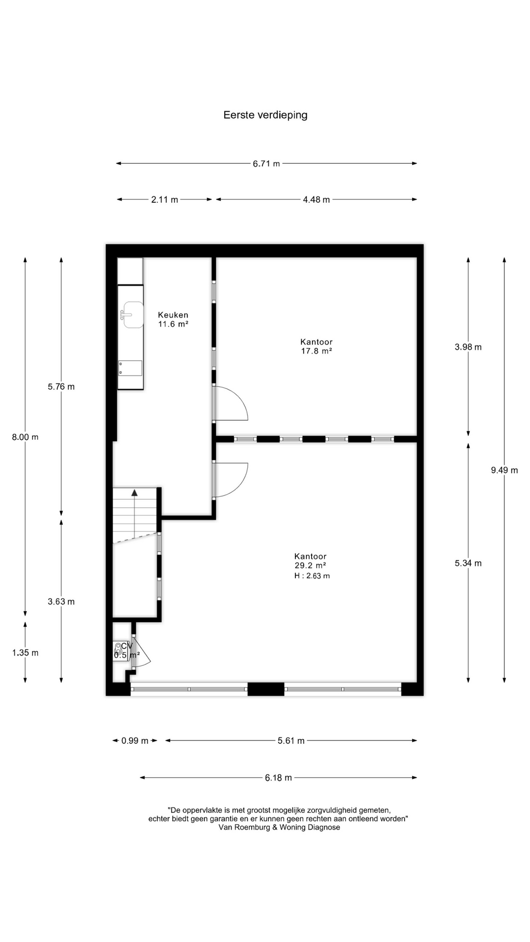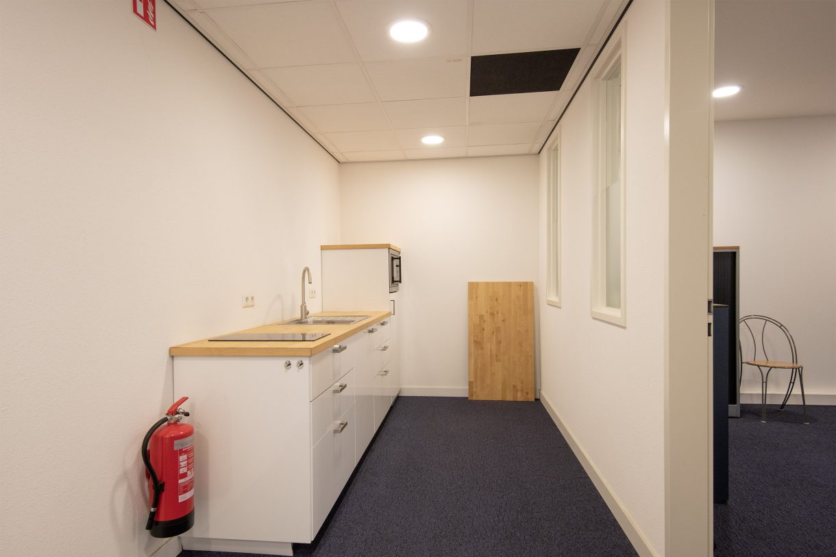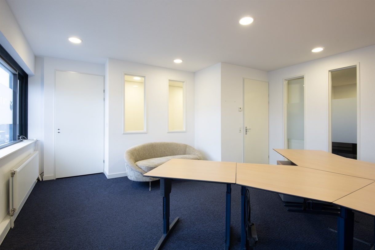 De kantoorruimte is op de 1e verdieping gelegen en bestaat uit een overloop met pantry en 2 kantoorruimten. De oppervlakte bedraagt plm. 62 m2. De begane grond beschikt over een bedrijfsruimte ter grootte van 64 m2 en is voorzien van een toilet en een ruime overhead-deur aan de voorzijde.