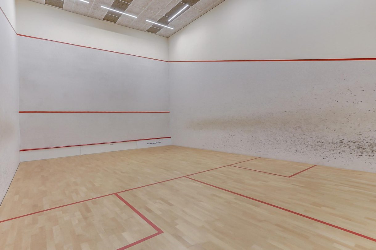 Op de begane grond krijgt u toegang tot de huidige sportschool en de aangebouwde bungalow. Zowel de sportschool als de bungalow hebben een eigen entree. De sportschool is ingedeeld in diverse ruimtes zoals o.a. sportruimtes, 2 squashbanen, een receptie met bar, toilet, keukenruimte, 2 kleedkamers, en een bergruimte. Totale oppervlakte sportschool circa 450 m².
