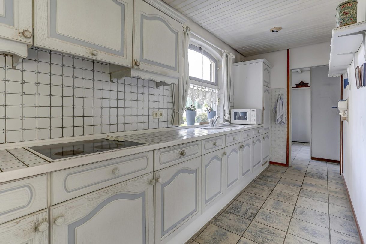 Deze bungalow is uitermate geschikt als mantelzorgwoning en is volledig gelijkvloers. De hal van de bungalow is voorzien van een toiletruimte en een vaste kast. Via de hal bereikt u de woon/eetkamer, deze ruimte is voorzien van een openhaard en een open keuken met inbouwkeuken. In de woon/eetkamer en in de keuken bevindt zich vloerverwarming. De woon/eetkamer is voorzien van een schuifpui, welke u toegang geeft aan de riante buitenruimte. Tevens is er vanuit de woon/eetkamer een (logeer)kamer met wastafel bereikbaar. Middels de keuken bereikt u een tussenportaal met vaste kast, welke u toegang geeft tot een slaapkamer, aangrenzend bevindt zich hier een badkamer. De badkamer beschikt over een ligbad, wastafel en toilet. Tevens bereikt u vanuit dit tussenportaal een garage. Hier bevinden zich de opstelplaats voor de cv-ketel en de aansluitingen voor de wasapparatuur. De garage van circa 44 m² is voorzien van openslaande dubbele deuren. Eveneens is via de garage de tuin bereikbaar.