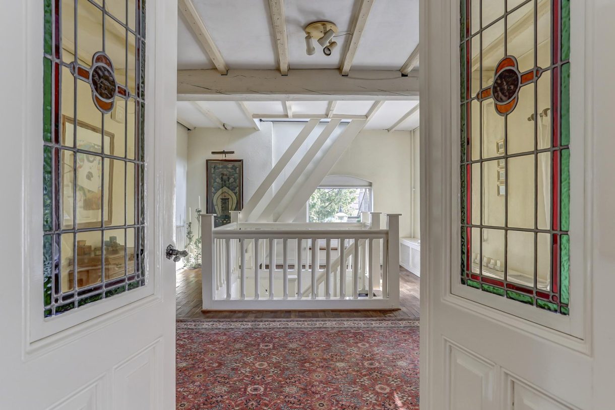 Via een eigen entree is de karakteristieke bovenwoning bereikbaar. Deze sfeervolle bovenwoning is voorzien van diverse oude elementen zoals o.a. en suite deuren met glas in lood en een balkenplafond. Via de overloop op de 1e verdieping krijgt u toegang tot de zeer riante woon/familieruimte van circa 120 m², welke beschikt over een grote stenenschouw met open haard en een open keuken met inbouwkeuken en diverse moderne inbouwapparatuur zoals o.a. een gaskookplaat, afzuigkap, magnetron, oven, koelkast, vriezer en een vaatwasser. U krijgt toegang tot het zeer grote dakterras middels een raam vanuit de woonkamer. Via een trap bereikt u vanaf dit riante dakterras de tuin. De overloop geeft u eveneens toegang tot een slaapkamer en de badkamer. Deze slaapkamer is thans in gebruik als kantoorruimte. De badkamer is voorzien van een vaste kast, ligbad, toilet en wastafel. Via een vaste trapopgang op de overloop bereikt u de 2e verdieping.