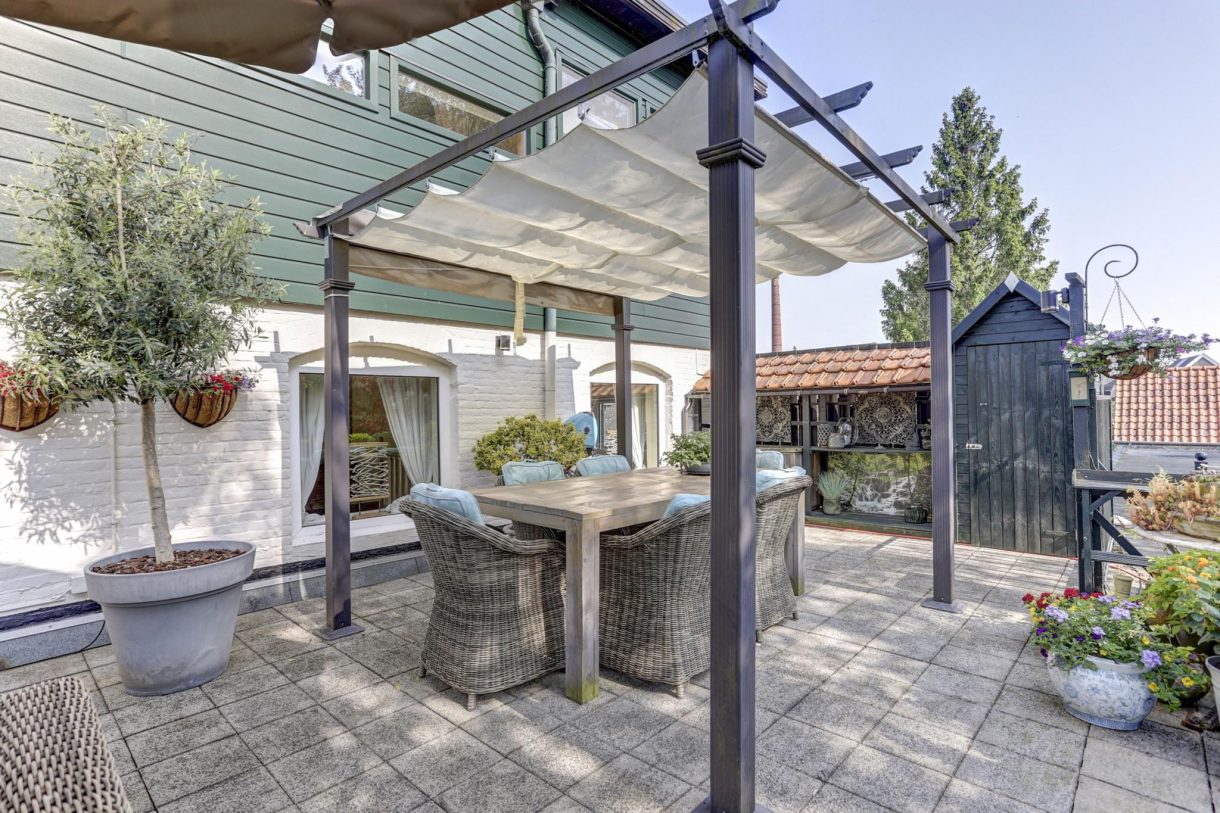 De tuin heeft diverse volwassenen beplating, sierbestrating, gazon, een vijverpartij, terrassen en biedt u ook nog eens volop privacy! In de tuin bevindt zich een houten tuinhuis van circa 2,17 x 2,18 m met buitenkast en afdak voor openhaardhout. De tuin is tevens voorzien van een broeikas van circa 2,01 x 2,93 m en een grondwaterpomp. Zowel het tuinhuis als de broeikas zijn voorzien van elektriciteit. De broeikas is aangesloten op de cv-installatie. De tuin leent zich goed voor buitenactiviteiten; sport, demonstraties en showruimte voor buitenartikelen.