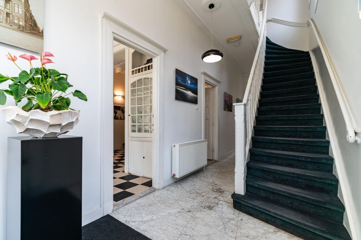 Markant “Statenkwartier” hoekherenhuis met karakteristieke toren en totaal ca. 309 m² woonoppervlak verdeeld over spectaculaire kamers en suite met gunstige lichtinval, fraaie gerenoveerde woonetage met dakterras, luxe sanitair en uitzonderlijk riante kamers. In de huidige gemengde bestemming wordt dit karakteristieke pand op de onderste twee etages gebruikt als medische kliniek, of te gebruiken als kantoor, en is de bovenste etage ingericht als luxe woonetage. Indien gewenst kan het geheel volgens het bestemmingsplan ook volledig als woning worden gebruikt.