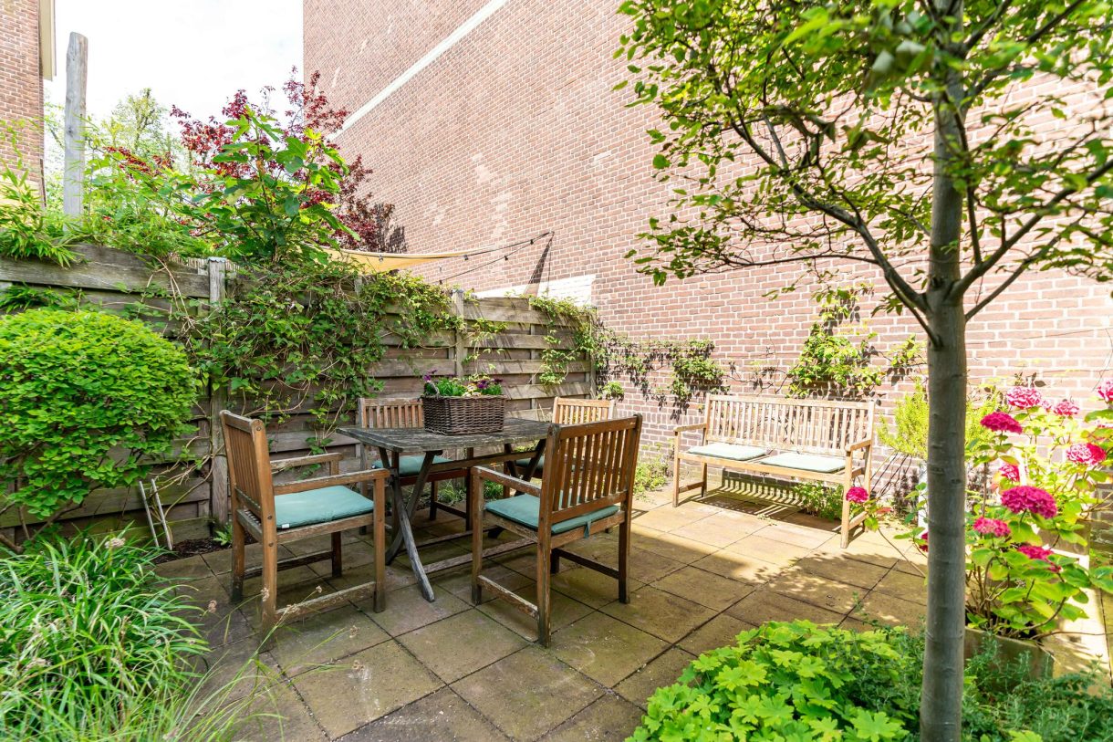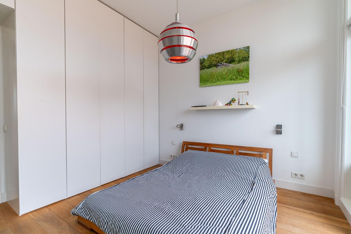 De echte eyecatcher is de zwevende trap naar het dakterras dat is voorzien van hoogwaardig dakluik, een stijlvolle glazen balustrade, composiet vlonders en wordt omringd door een groen sedum dak. Op de woonetage zijn nog twee ruime slaapkamers te vinden die rustig zijn gelegen aan de achterzijde van het gebouw waarbij de hoofdslaapkamer beschikt over een maatwerk kastenwand en openslaande deuren naar achterbalkon. De tussengelegen badkamer beschikt over fraai tegelwerk, ligbad, inbouwkast, meubel met wastafel, handdoekradiator en inloopdouche met glazen wand.