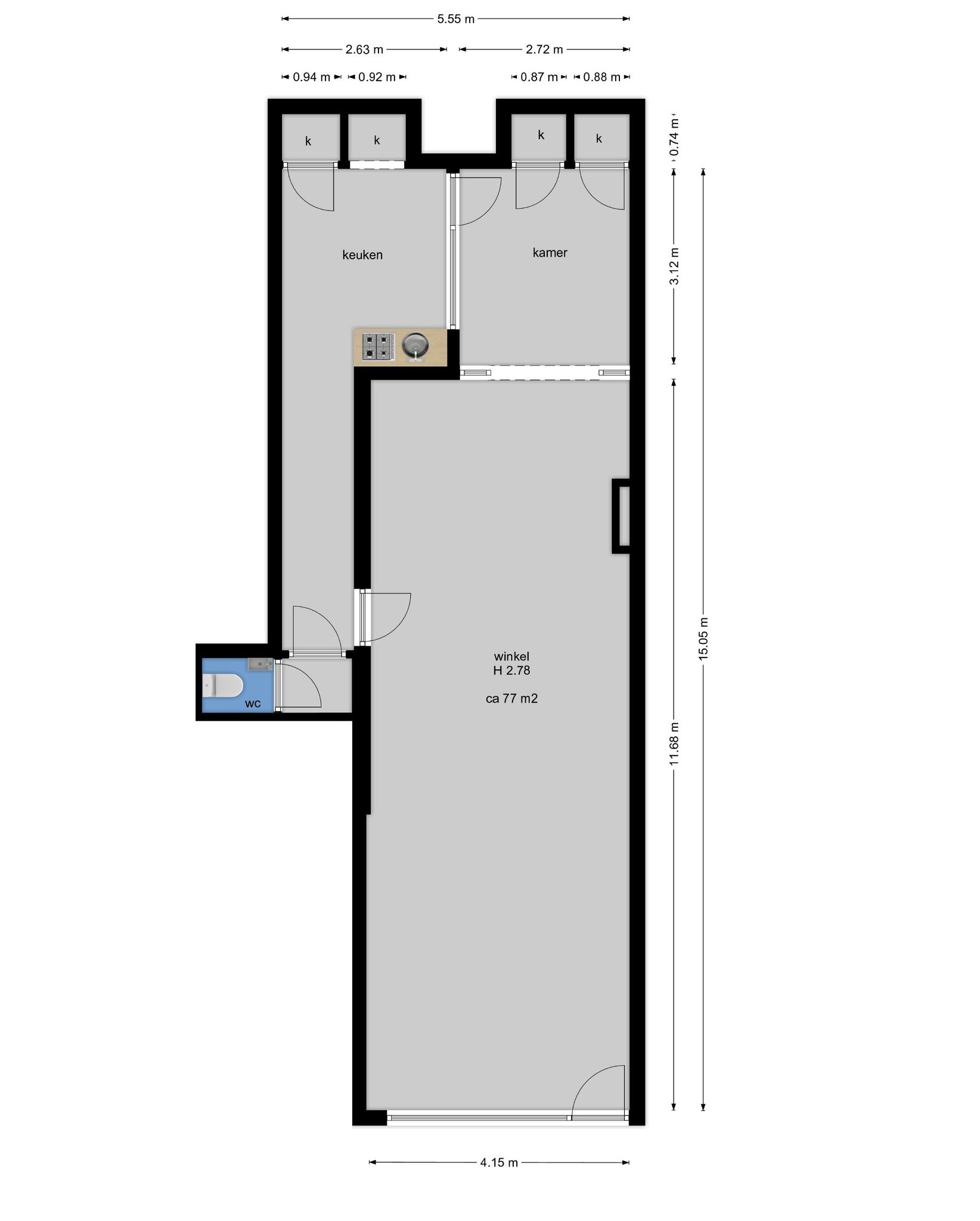 De entree bevindt zich links in de voorgevel. Achter de entree bevindt zich de winkelruimte van