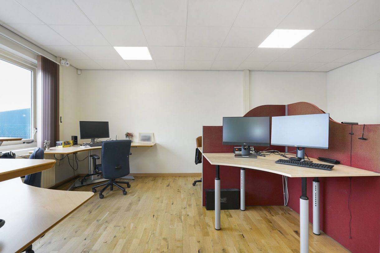 Het object is gelegen in een bedrijfsverzamelgebouw welke uit 16 units bestaat. De kantoorruimte is verdeeld over twee lagen. Het onderhoud is zowel binnen als buiten goed.
