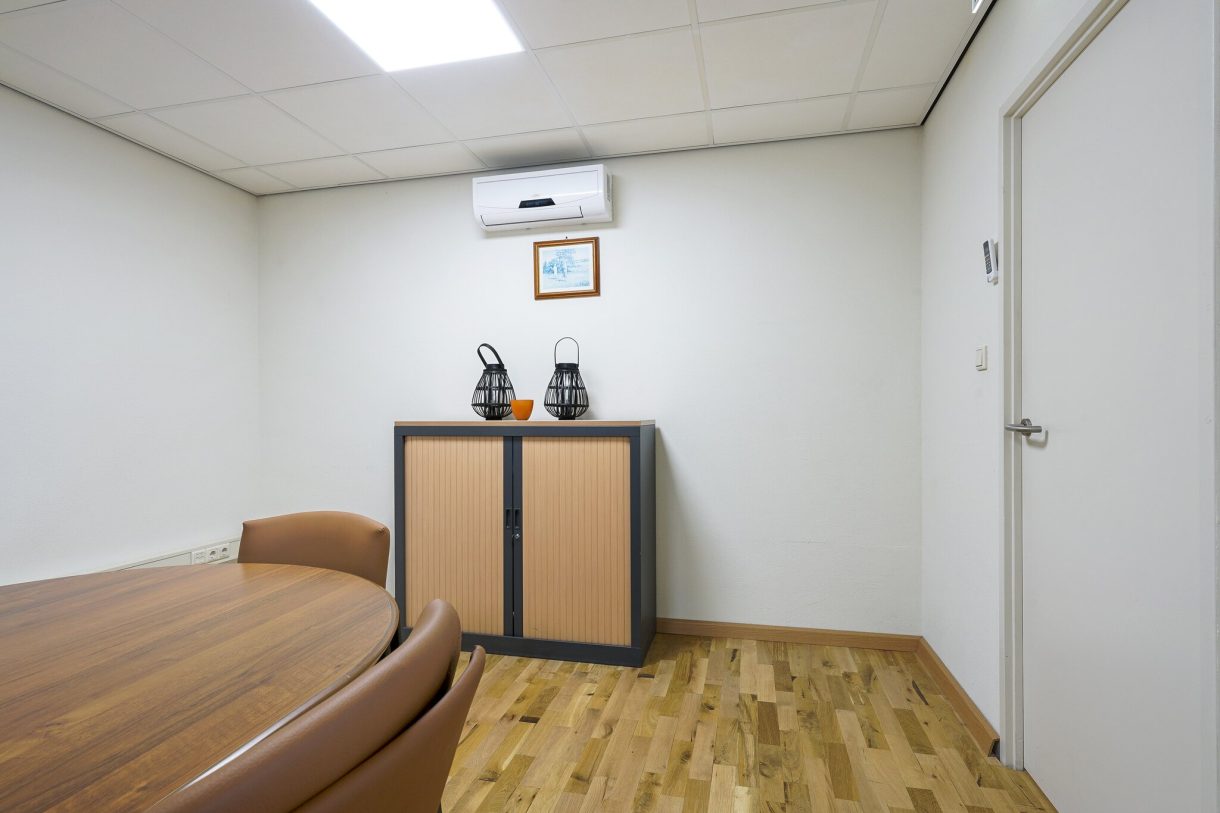 – plafond-airco in kantoorgedeelte en wand airco in de spreekkamer;