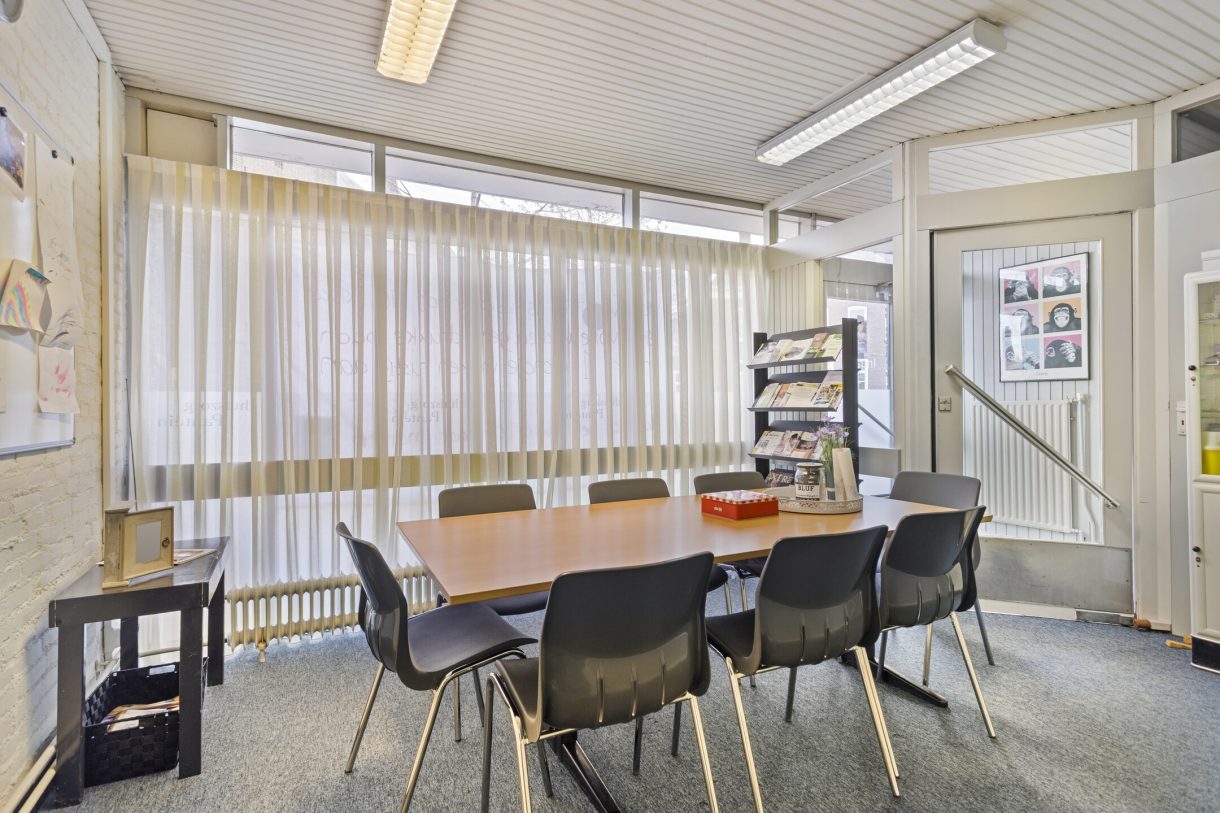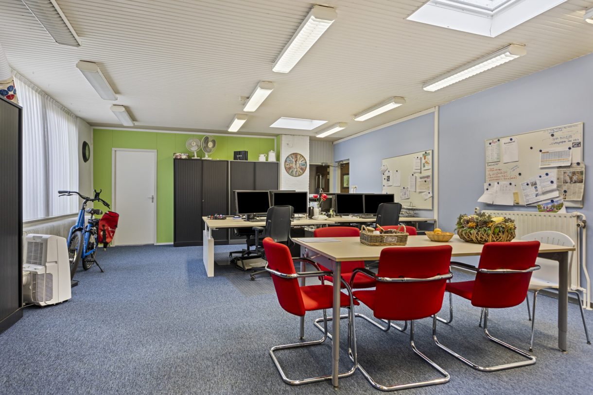 De huidige kantoorruimte beschikt over een eigen entree aan de voorzijde, wachtkamer, kantoor-/werkplekken en bijkeuken/berging met toilet en berging met eigen cv.-ketel. Vanuit de woning is ook toegang tot deze kantoorruimte. De kantoorruimte geniet lokaal bekendheid als het voormalig postkantoor van Volkel.