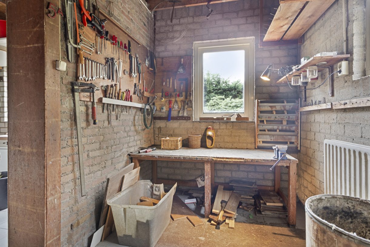 Achter de kantoorruimte is een flinke berging met garage. Naast de nodige opslagruimte hangt hier ook de cv.-ketel. Voor de garage is een lange oprit, waar meerdere auto’s op eigen terrein geparkeerd kunnen worden.
