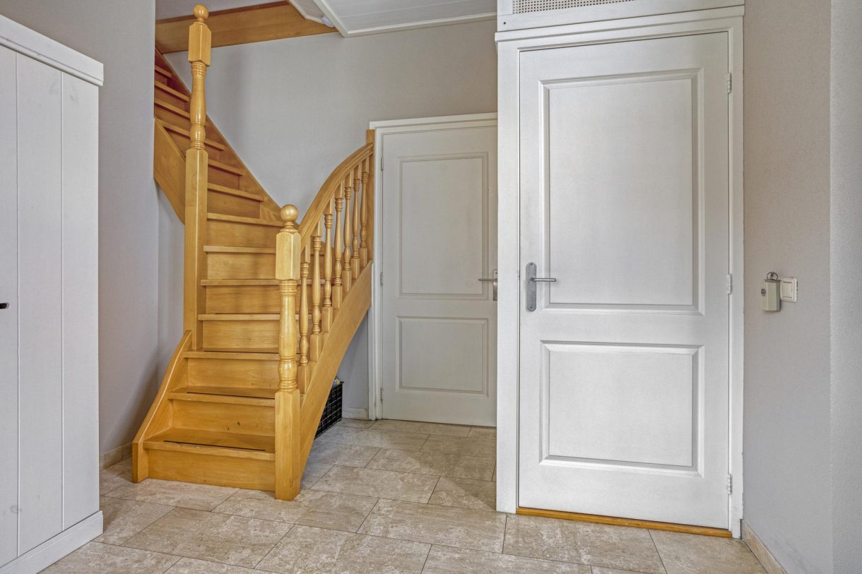Indeling: Ruime hal met (vernieuwde) meterkast en cv.-kast (Nefit HR combiketel uit 2019). In de hal is ook de trap naar de verdieping. Vanuit de hal is toegang tot de woonkeuken met moderne inrichting voorzien van inductiekookplaat met geïntegreerde afzuiging, vaatwasser, koelkast, combi oven/magnetron en een kokend water kraan. Op de vloer in de keuken ligt een travertin vloer met vloerverwarming, welke doorloopt in de woonkamer. De woonkamer heeft een grote erker aan de zijkant van de woning en daardoor is dit een fijne lichte woonkamer.