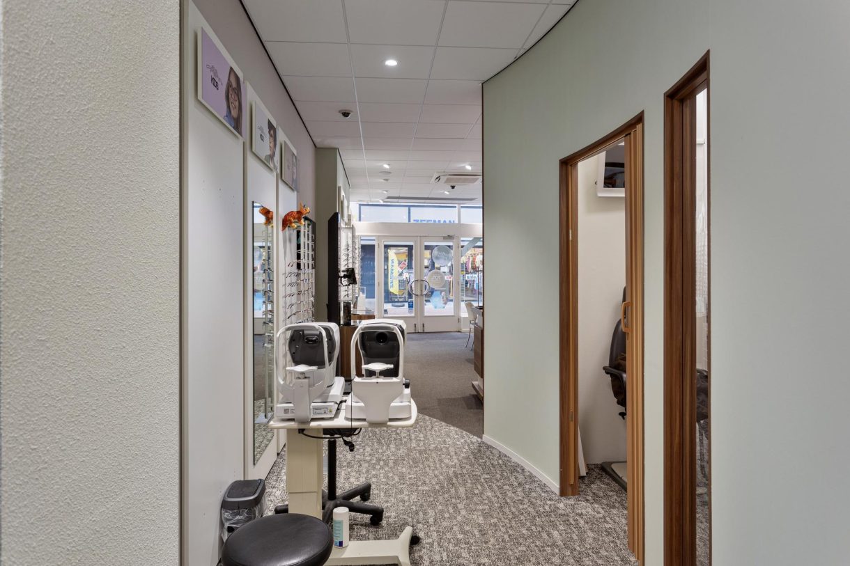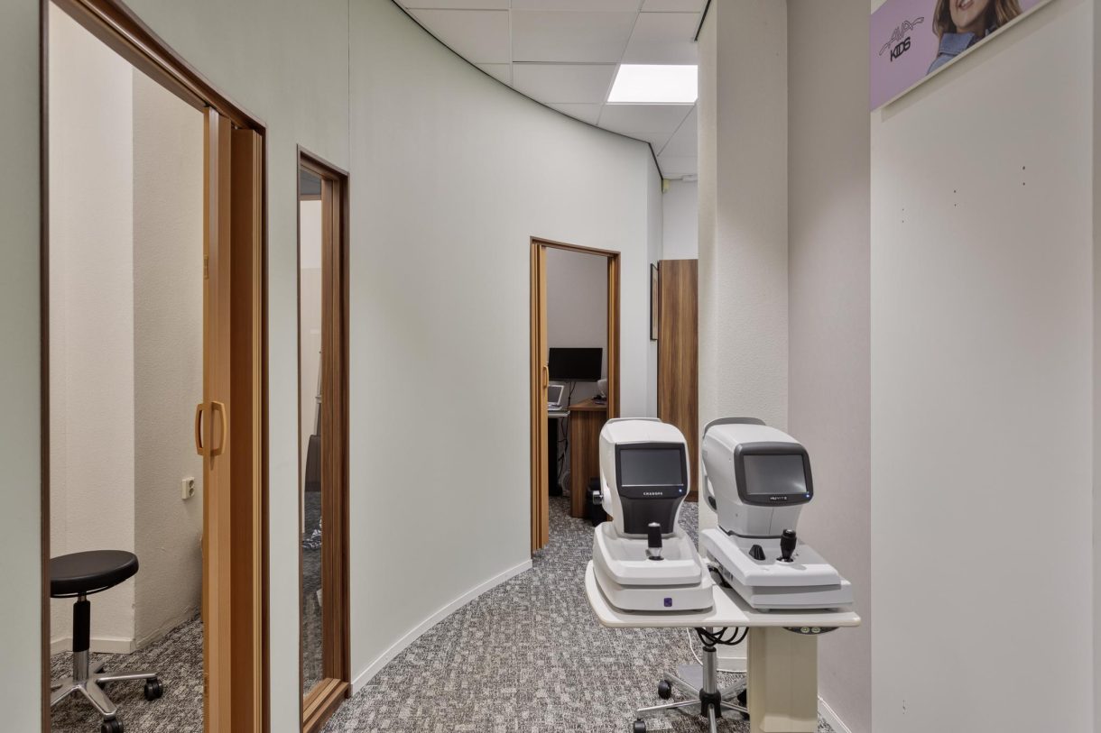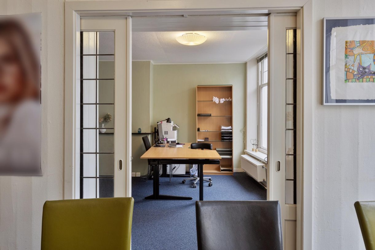 De L-vormige winkelruimte heeft een frontbreedte van circa 5.70 meter en een mooie L-vorm, waardoor er meer ruimte is dan de buitenzijde doet vermoeden. Rechts in de winkelruimte is de meterkast en aan de linkerzijde, achter de gebogen muur, zijn de trappen naar de eerste verdieping en de kelder. Er zijn twee spreek- of behandelkamers ingericht. Drie lichtkoepels zorgen voor lichtinval in het achterste gedeelte van de winkelruimte onder het platte dak, dat in 2024 vernieuwd is.