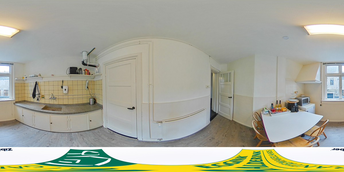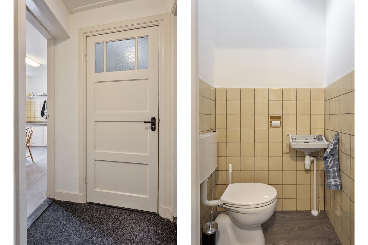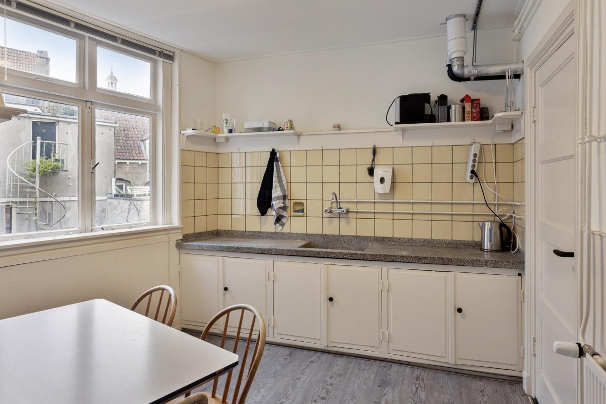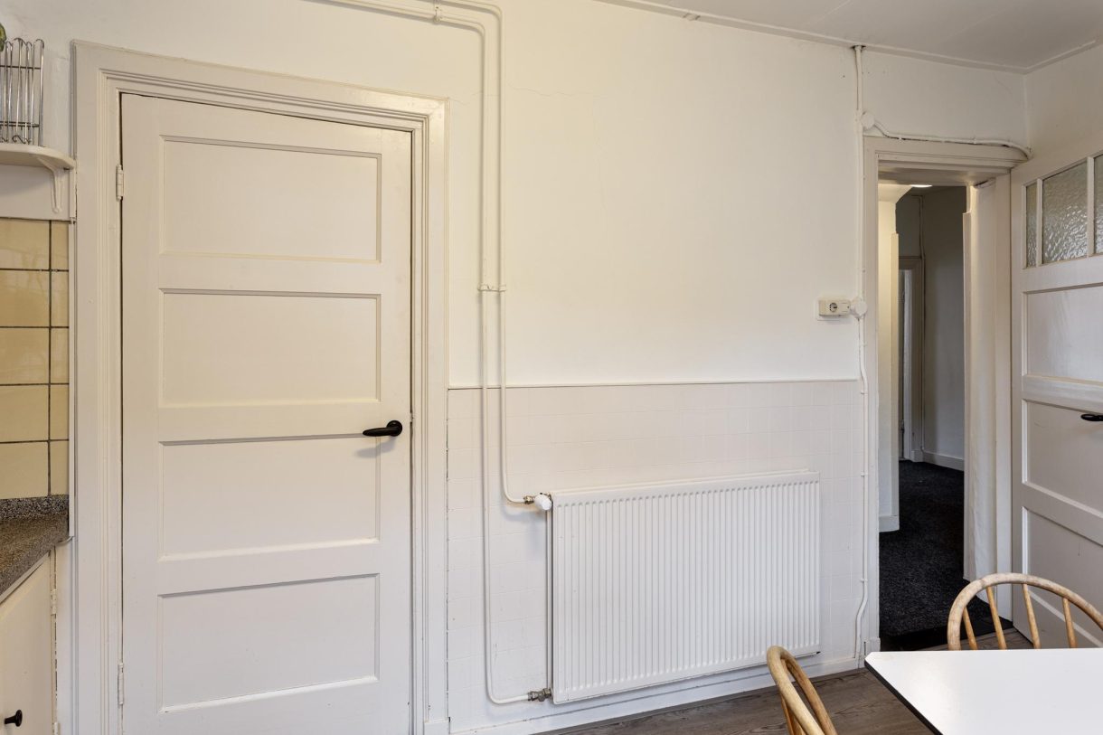 Aan de achterzijde zijn de toiletruimte, keuken en de voormalige doucheruimte met de bijna nieuwe c.v.-ketel.