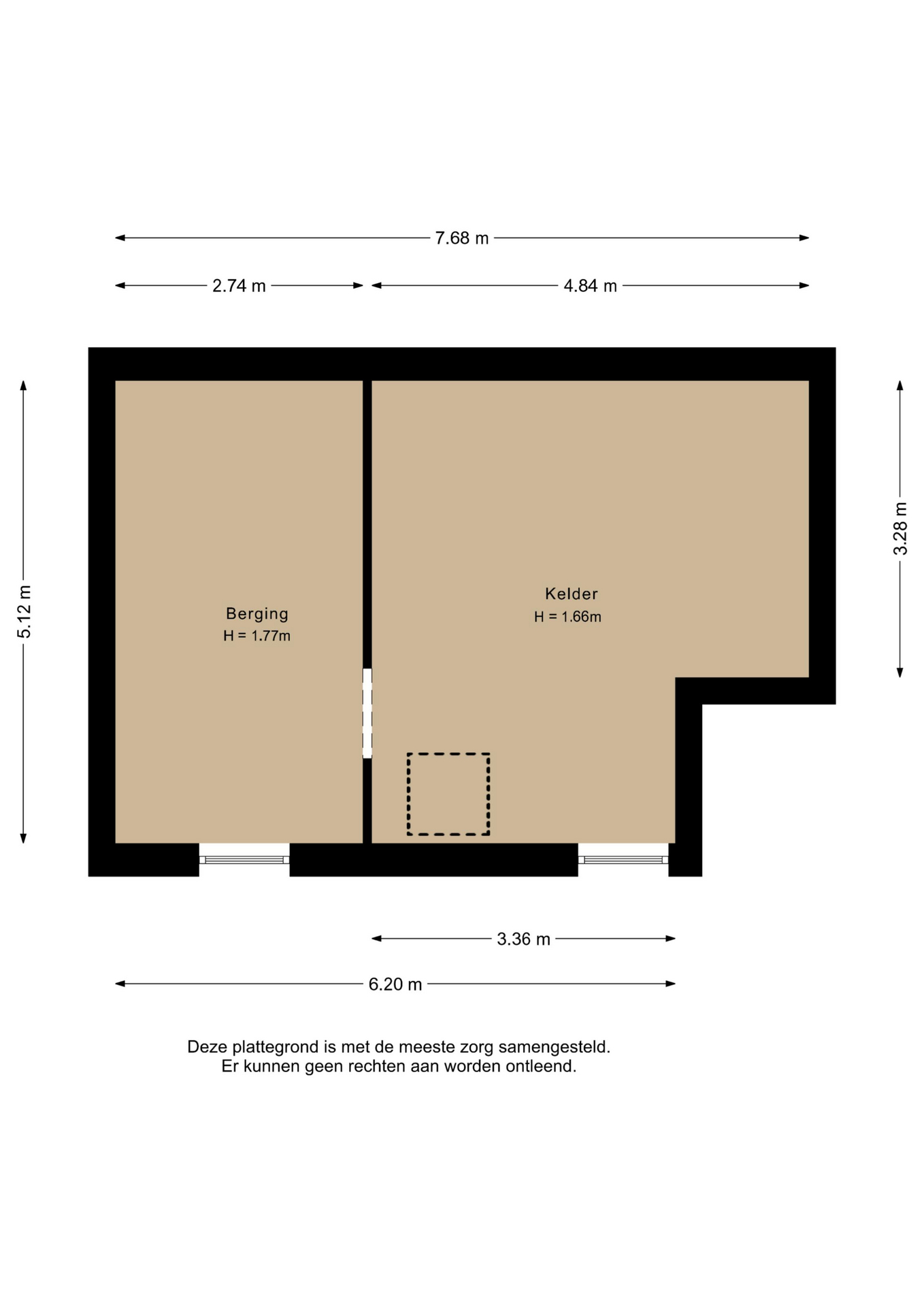 Vanuit de opslag/schuur is de grote kelder te bereiken, die uit twee delen bestaat. De huidige hoogte varieert van 1.66 tot 1.77 meter.
