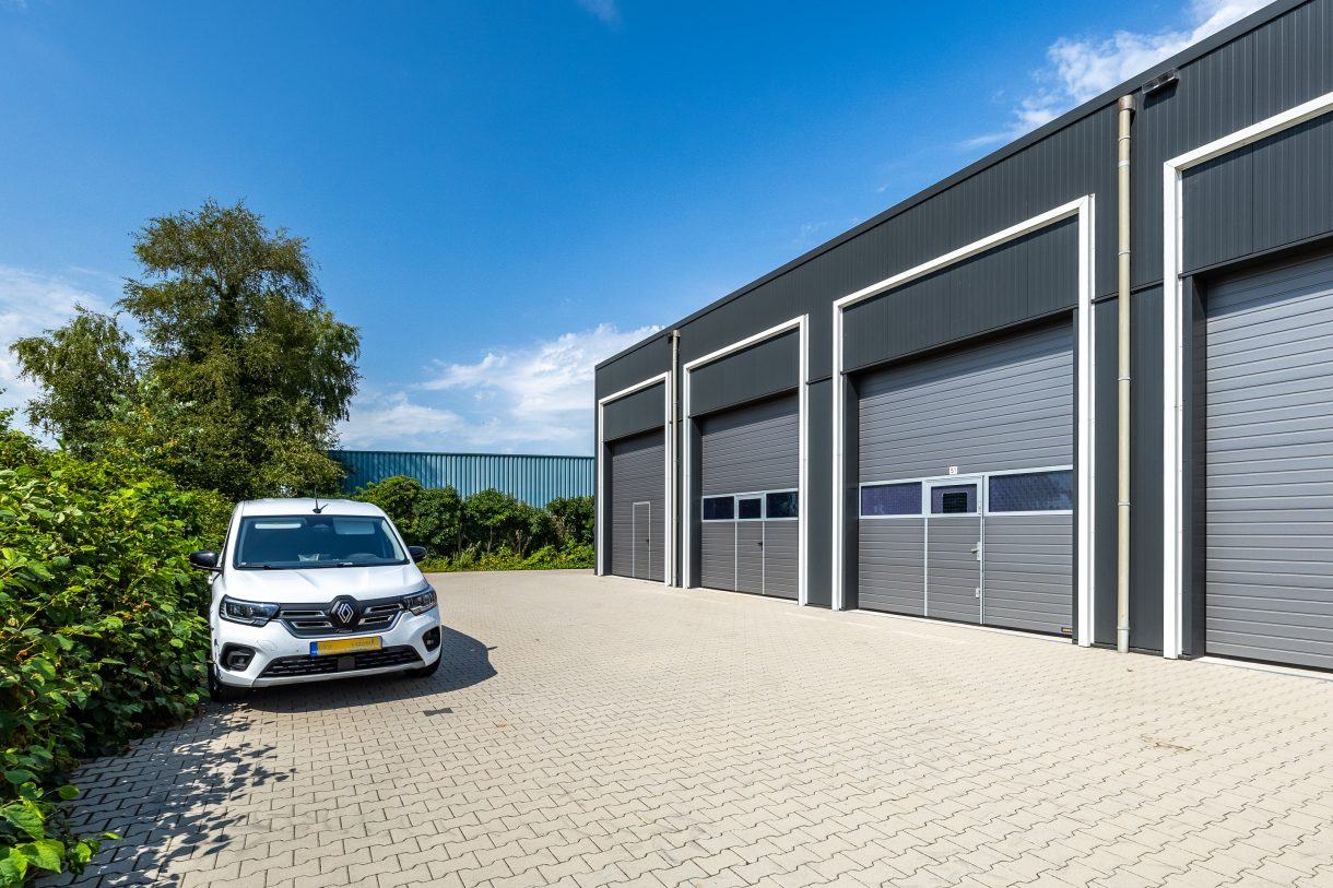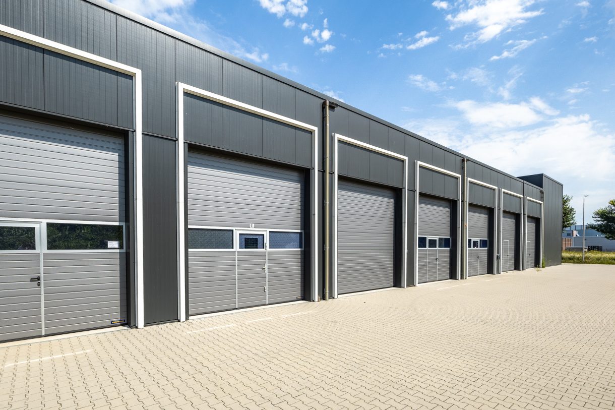 Nieuwbouw bedrijfshal afmeting ca. 5 bij 9 meter met roldeur.