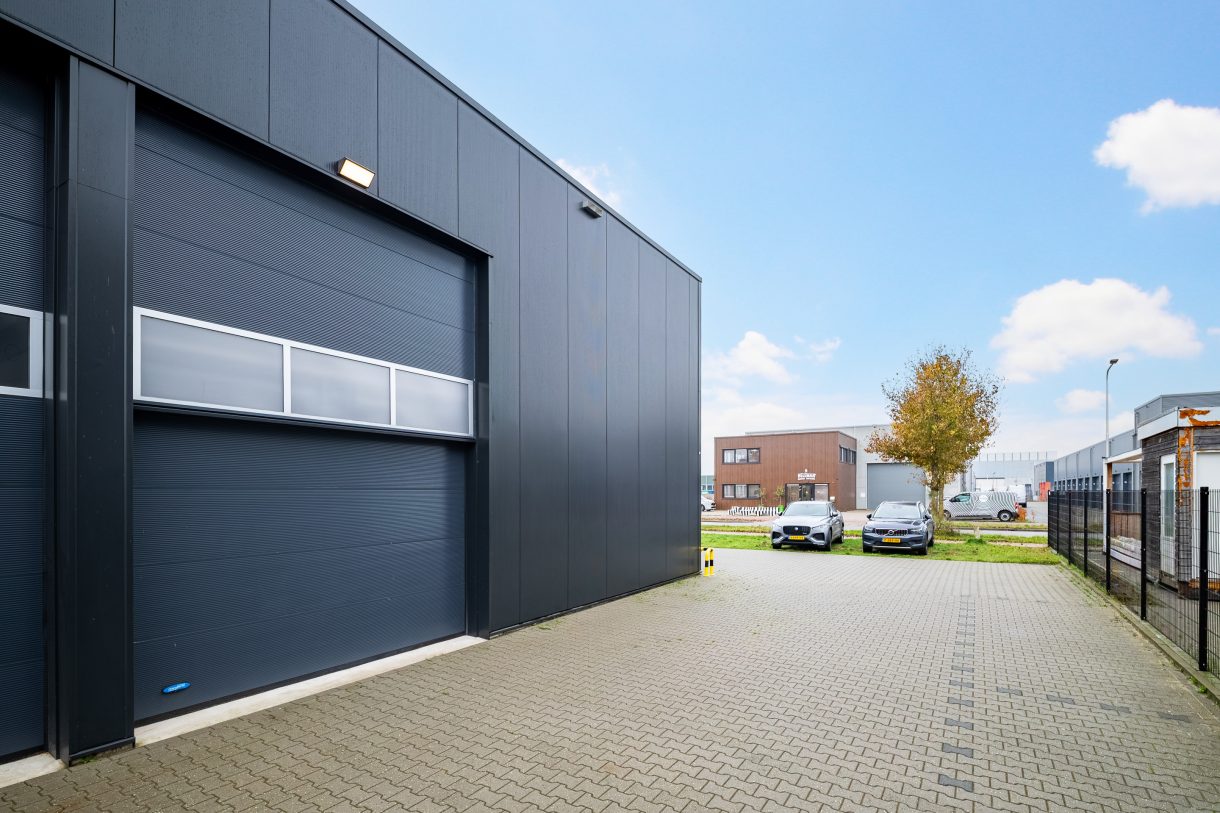 Toegang tot de bedrijfsruimte met geïsoleerde elektrische overheaddeur (2,75 m hoog x 3,5 m breed)