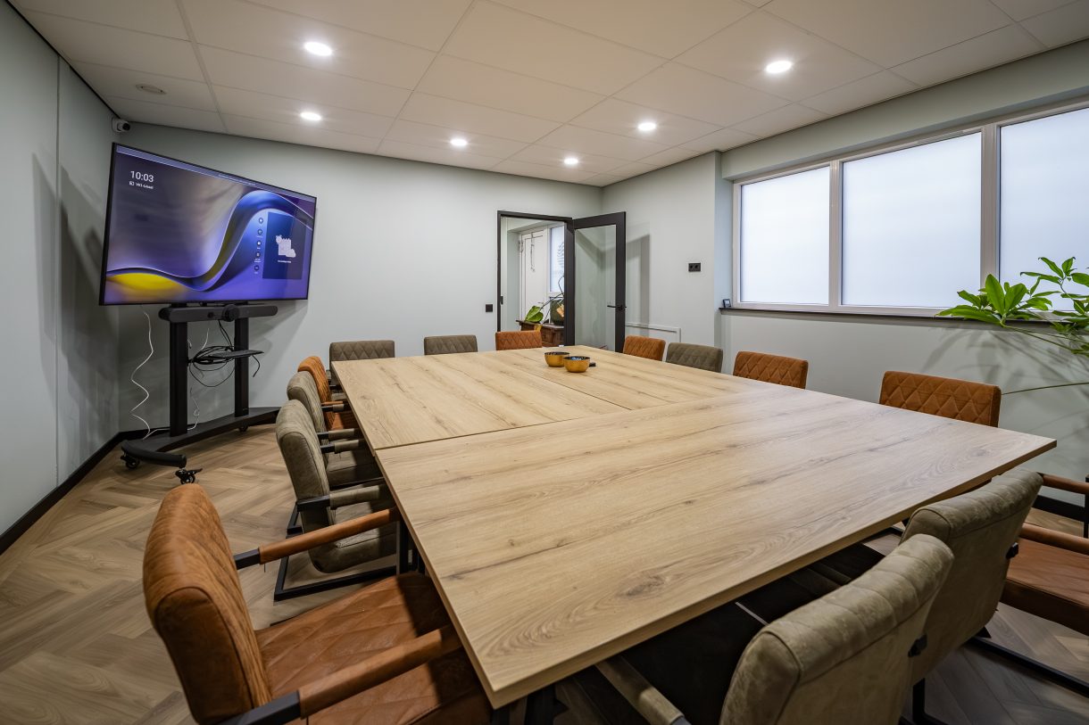Vergaderruimte aan de voorzijde met vloerverwarming en PVC-visgraatvloer
