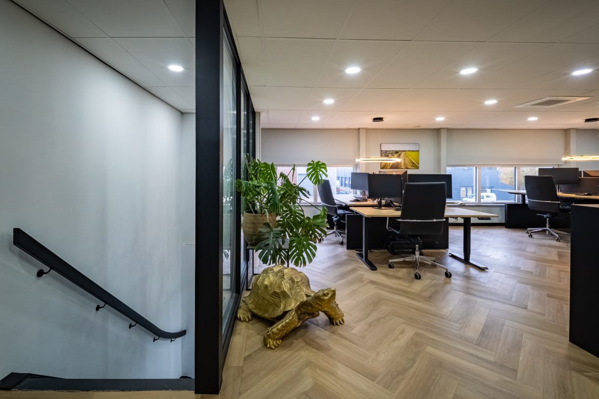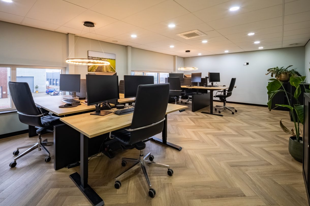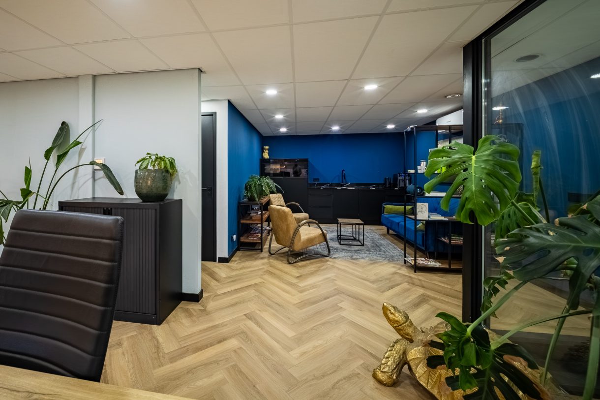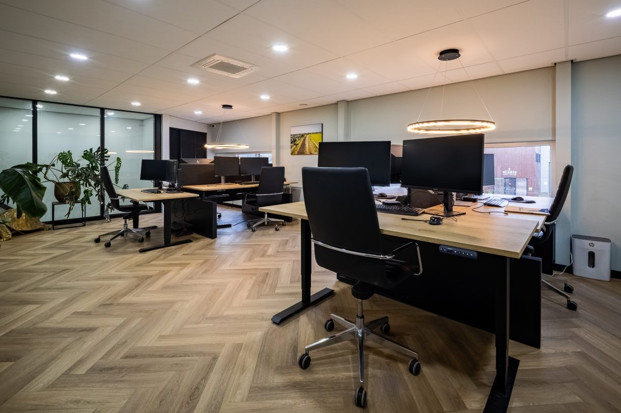 Grote, lichte kantoorruimte met vloerverwarming en visgraat PVC vloer
