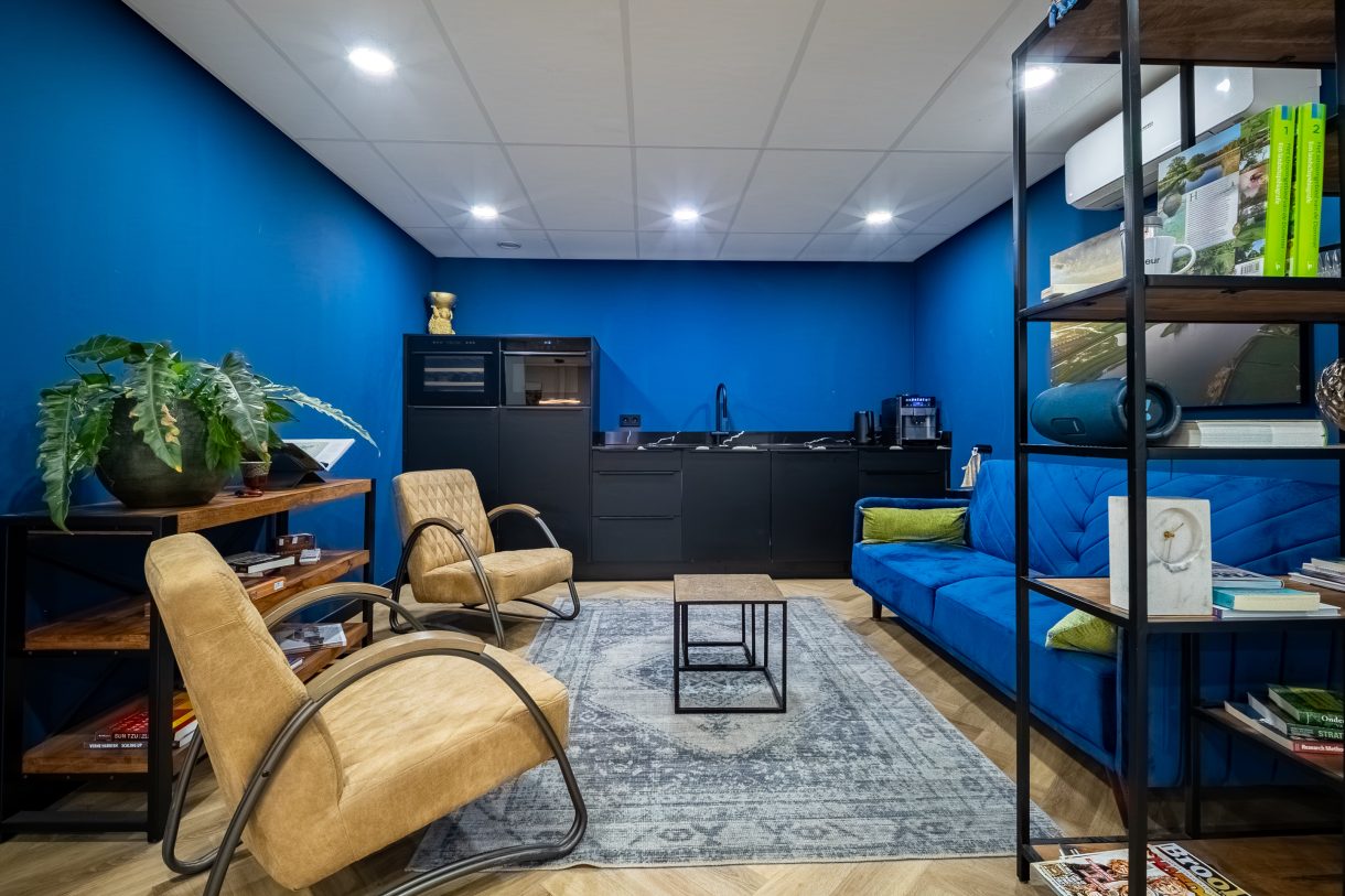 Dankzij de slimme indeling is de verdieping multifunctioneel inzetbaar als kantoor, showroom, vergaderruimte of bedrijfsstudio.