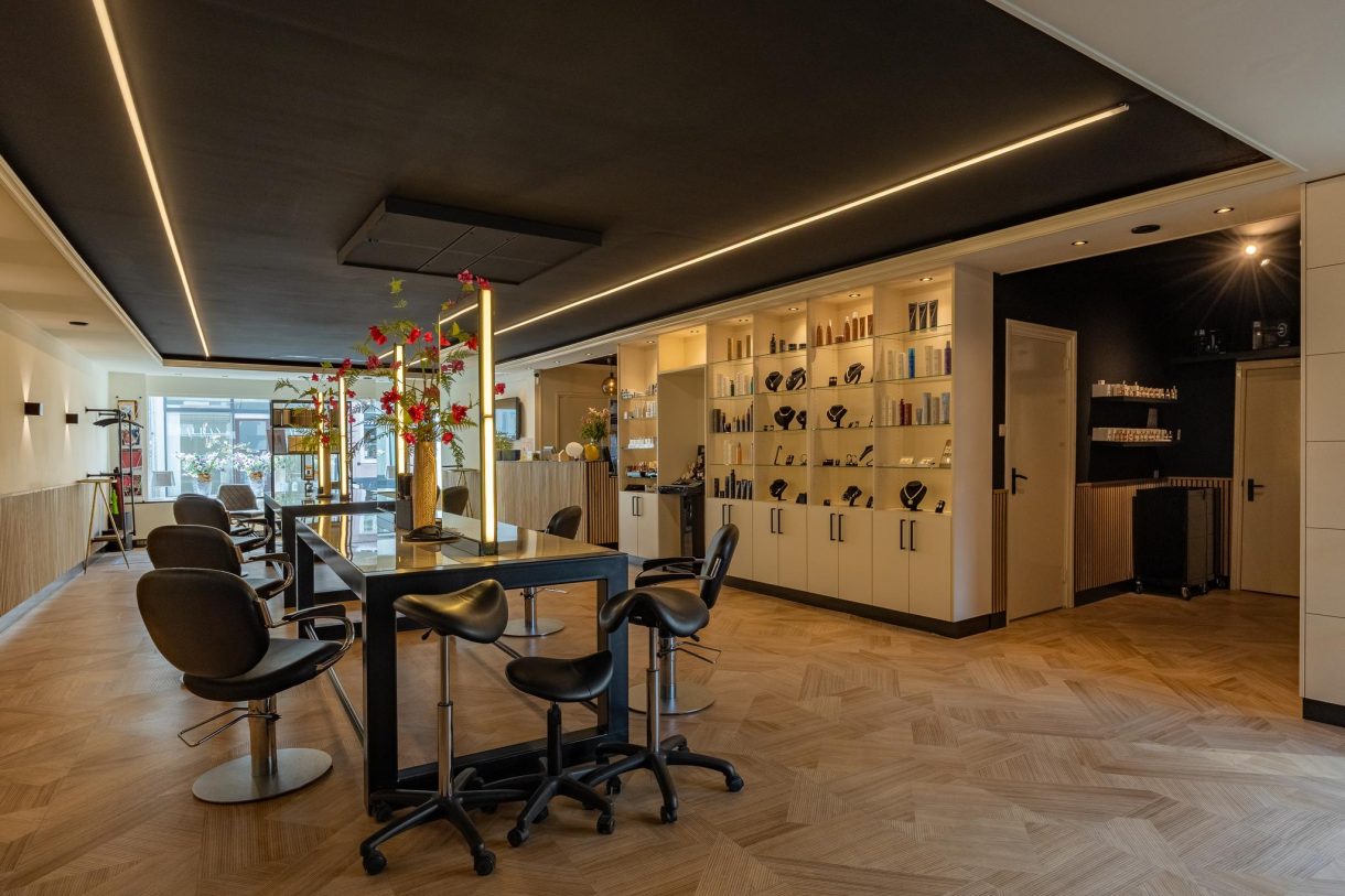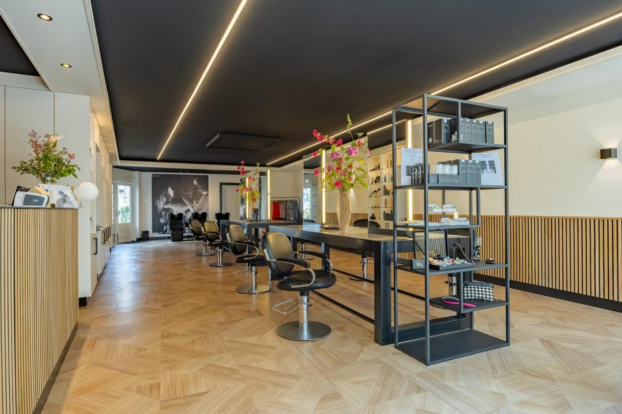 De bedrijfs-/winkelruimte, in gebruik als kapsalon, heeft een eigen entree. Met een bruto vloeroppervlakte van circa 163 m2 is dit een zeer royale ruimte, die smaakvol is verbouwd tot een representatieve commerciële ruimte. Aan de linkerzijde zijn de balie met kassa, een aparte privésalon, een opslagruimte en een pantry. In het achterste deel van de bedrijfs-/winkelruimte zijn een toiletruimte, de keuken/kantine . Eigen c.v HR ketel Remeha oktober 2024, eigendom en een boiler.