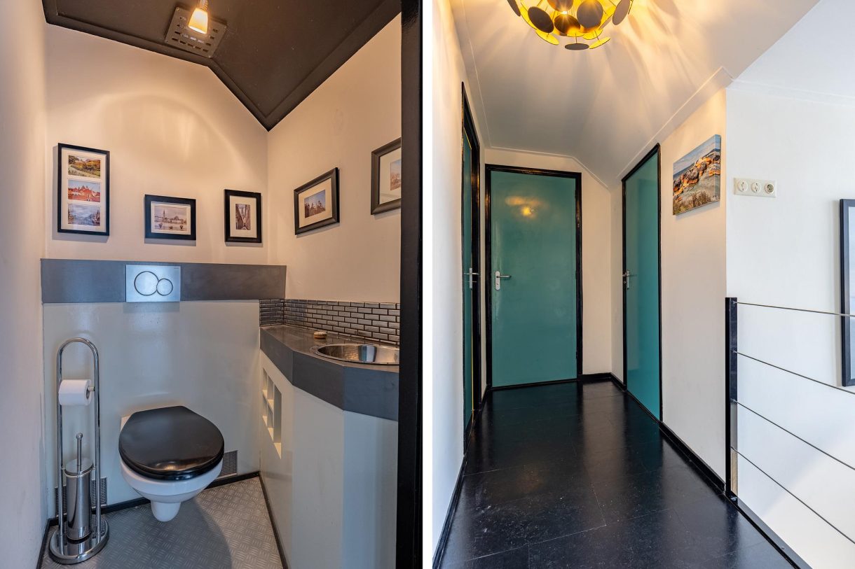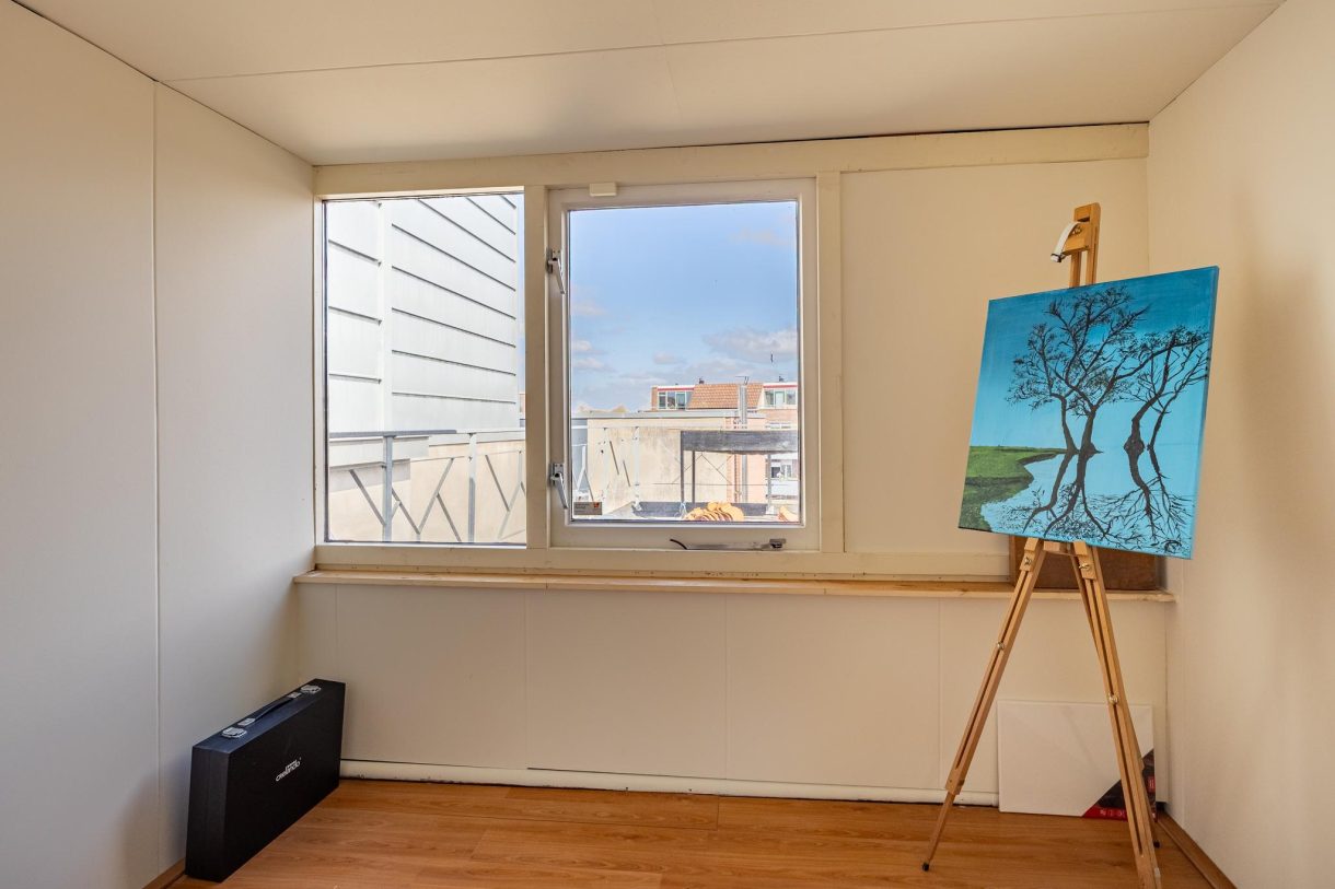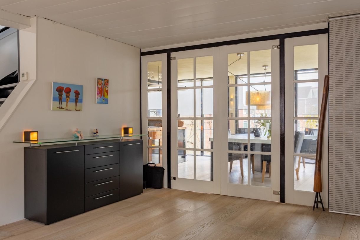Op de eerste verdieping zijn een lichte overloop met toiletruimte, de zeer ruime woonkamer, een fantastische leefkeuken en het dakterras. De woonkamer, met een breedte van maar liefst 9.25 meter, is verdeeld in een zitkamer en een tv-kamer. Door de grote ramen aan de voorzijde kijk je naar de mooie straat en aan de achterzijde richting de leefkeuken en het dakterras.