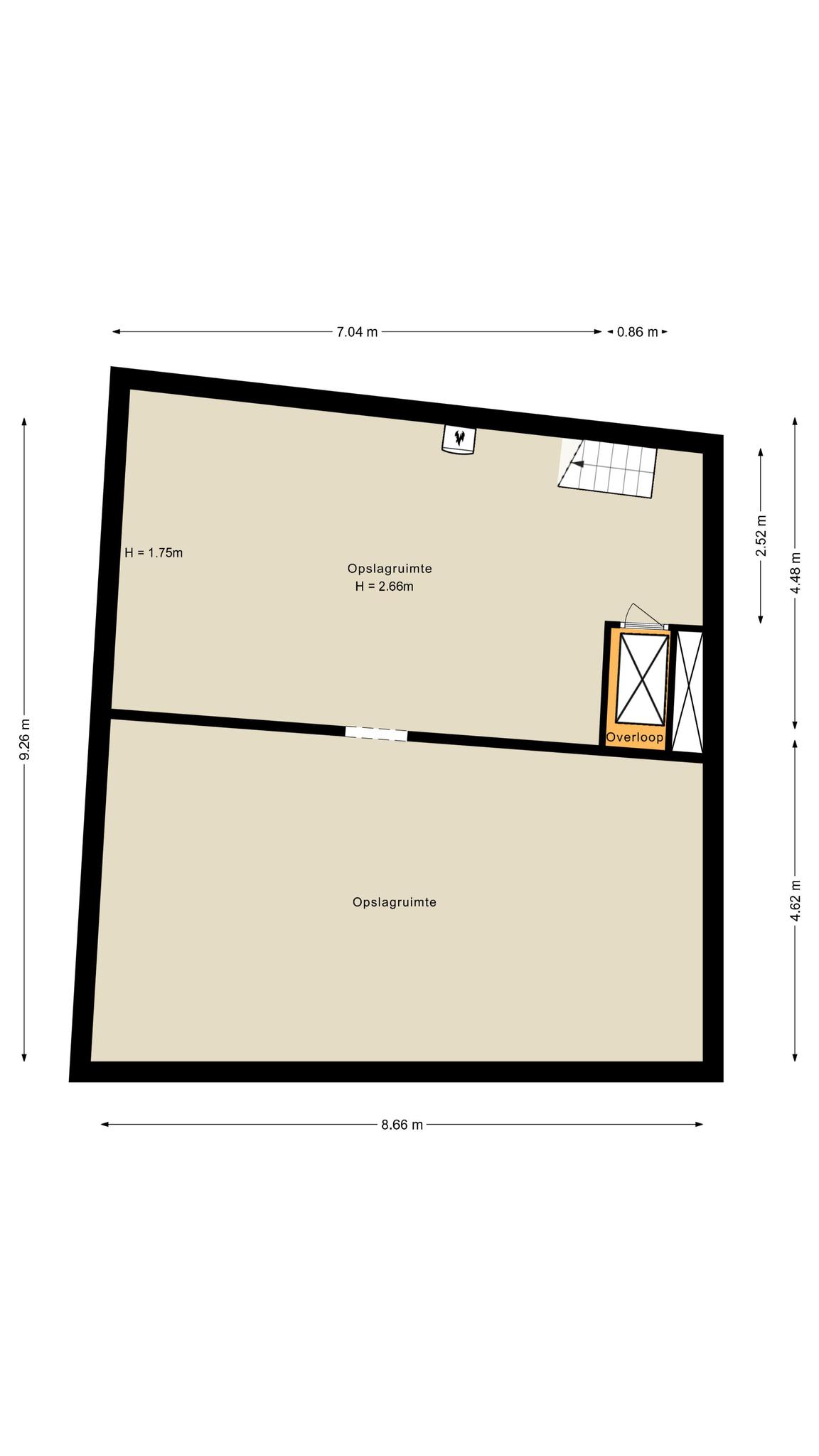 Wonen op de verdieping is toegestaan, maar nu is dit nog een bergzolder (geen daglicht aanwezig)