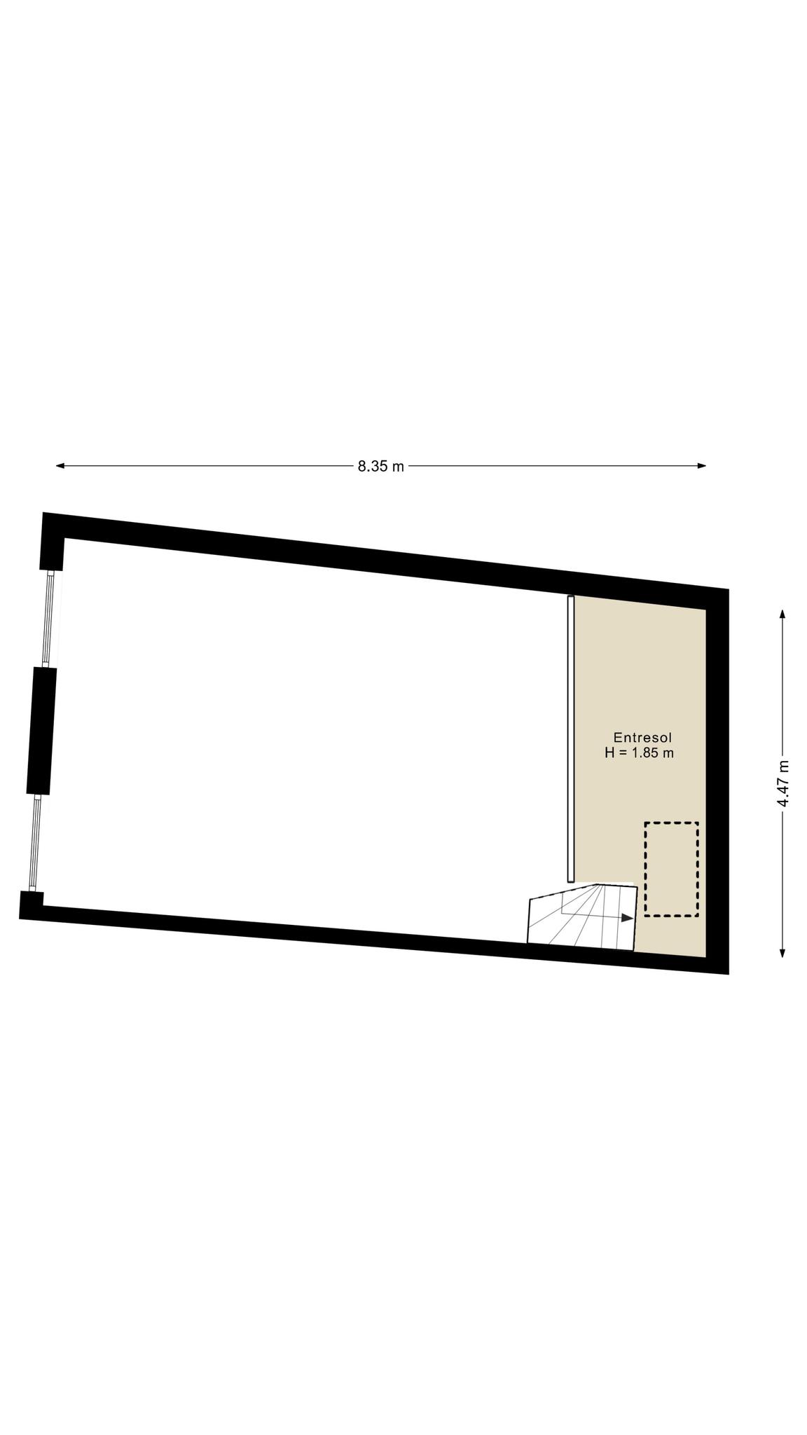 De commerciële ruimte wordt verkocht leeg van huur en gebruik.