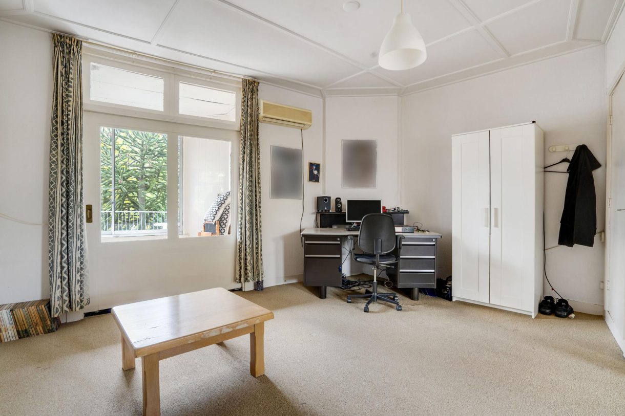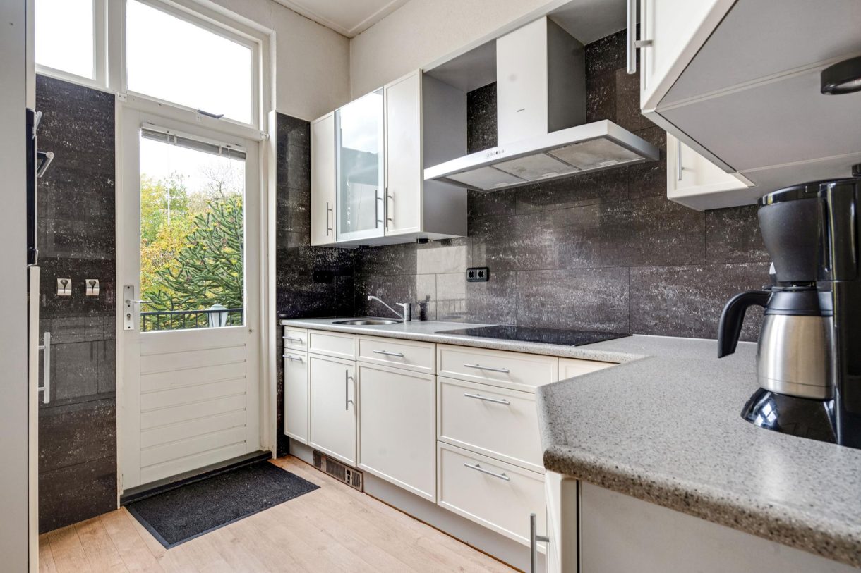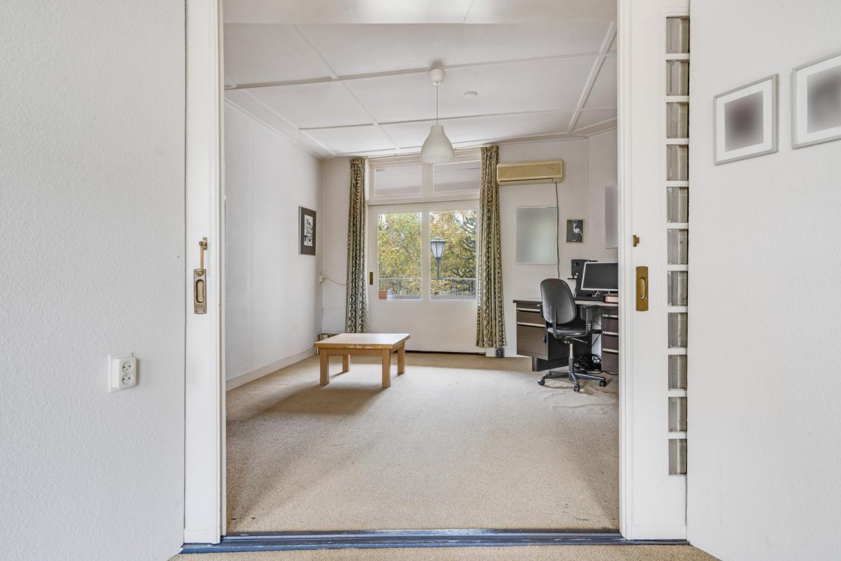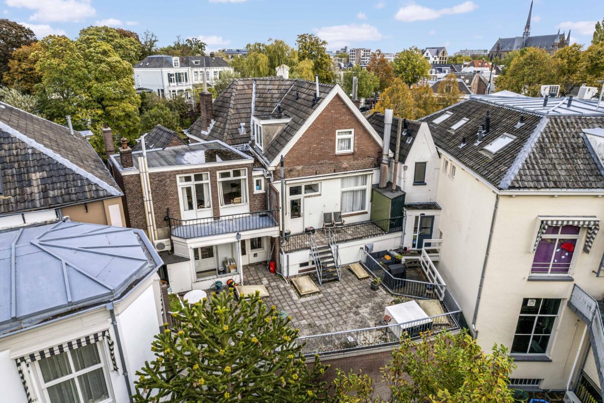 studeerkamer met zicht op de singel, slaapkamer, douche, keuken met inbouw en apparatuur en toegang tot groot en zonnig dakterras;