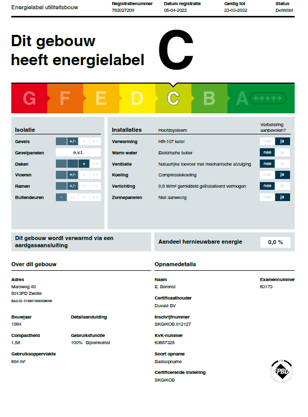 Het pand is goed onderhouden en multifunctioneel ingericht t.b.v. een opleidings- en praktijkcentrum voor de bouw.