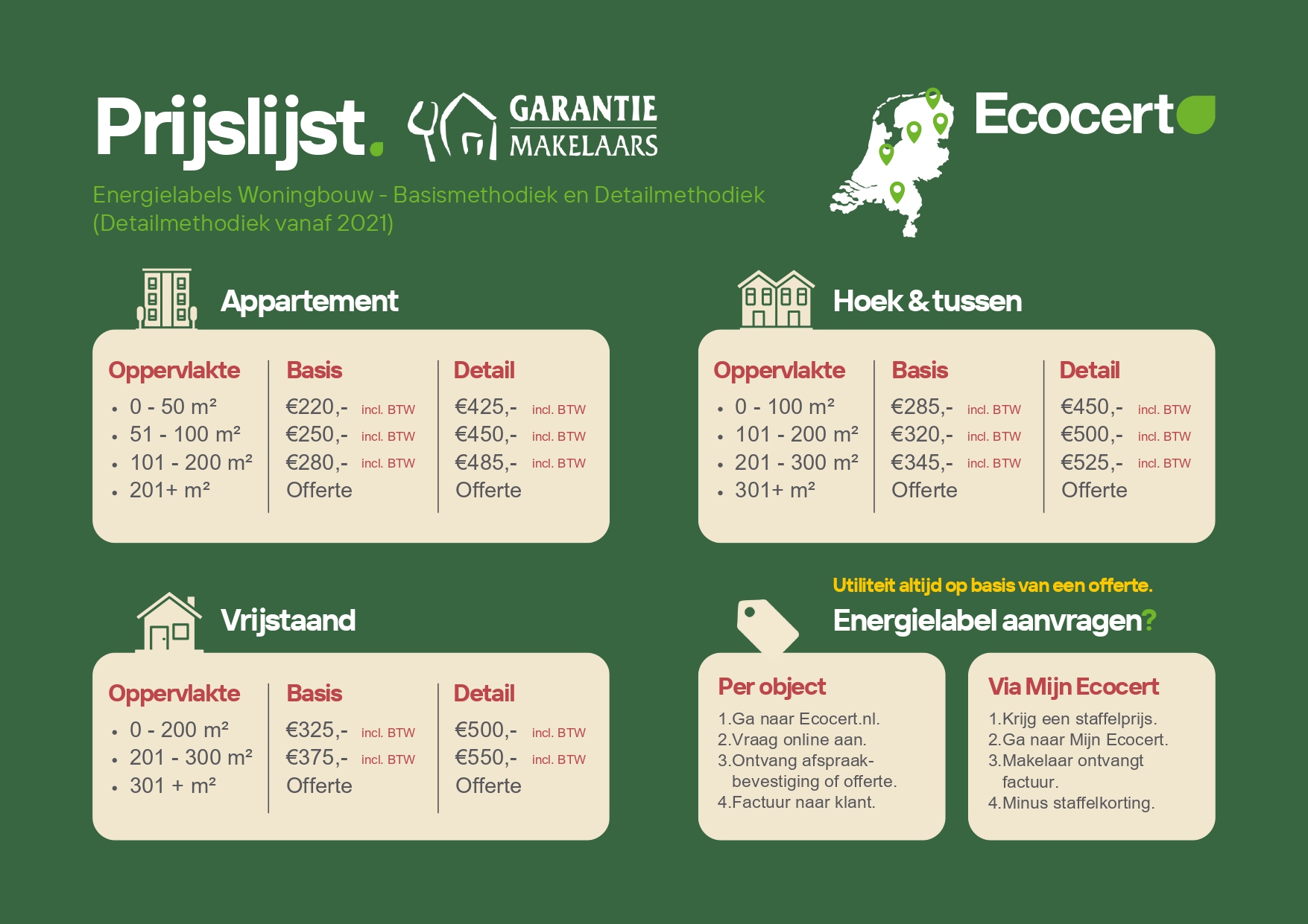 De Duurzaamheidsgarantie is een volledige service waarmee je precies weet hoe je jouw woning energiezuiniger kunt maken. Je krijgt niet alleen een officieel energielabel, maar ook een compleet woonverbeterplan met advies op maat.