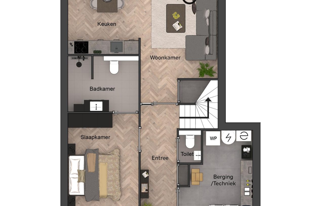 De woningen zijn volledig gasloos en hebben ieder een individuele warmtepompinstallatie, waarmee u de woning kunt verwarmen in de winter en koelen in de zomer. De temperatuurverwarming zal primair via de vloer verlopen. Dat betekent: geen in het oog springende radiatoren, alles is netjes in de vloeren weggewerkt. Doordat de woningen voorzien zijn van uitstekende isolatie, in zowel de vloer, als de wanden, het dak en de beglazing, zijn ze uiterst energiezuinig. Daarnaast wordt bij de woningen een deel van het energieverbruik gecompenseerd door middel van zonnepanelen op het dak. Dat scheelt een hoop in de maandelijkse lasten!