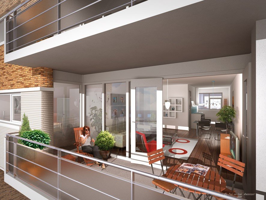 Wat verder opvalt zijn de grote buitenruimtes, waarbij er weer te kiezen is uit een balkon, een terras of juist een combinatie daarvan. Ook kunnen we noemen het wisselende uitzicht, de bijzondere detaillering, afwerking en de te gebruiken materialen.