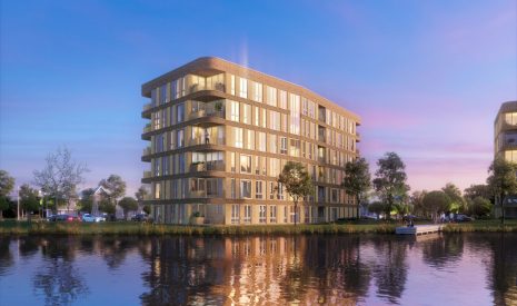 De 11 3-kamer appartementen die zich in het midden van het complex bevinden, hebben een oppervlakte van 76 m2. Deze appartementen zijn gericht op het noorden of het zuiden. Een ervan bevindt zich op de begane grond, de overige op de 1e tot en met de 5e verdieping. De lichte woonkamer met open keuken is totaal 30 m2 groot. De keuken is voorzien van alle noodzakelijke aansluitingen voor elektrisch koken, een koelkast en een vaatwasser. Vanuit je woonkamer heb je bij deze appartementen toegang tot een loggia, een inpandig balkon van zoān 6 m2. Een lekkere beschutte plek om na een dag werken even tot rust te komen, met uitzicht over het water of het groen in de omgeving. De hoofdslaapkamer is tussen de 15 en 18 m2 groot met naast het bed ook voldoende ruimte voor kledingkasten. De tweede slaapkamer grenst aan de loggia en is ruim 8 m2 groot. Deze kamer kun je eventueel ook inrichten als werkkamer. De badkamer van circa 5 m2 is voorzien van een douche, wastafel en tweede toilet.